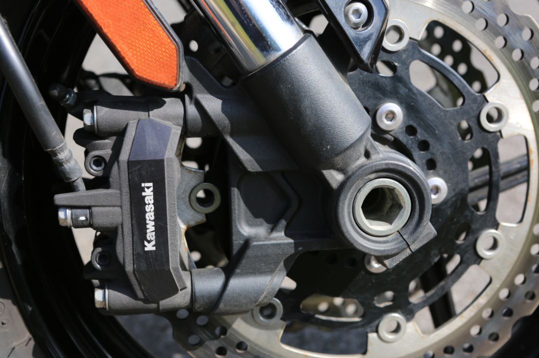 2019 Versys 1000ABS采用鋁合金雙翼梁車架,并縮小車架寬度,提供更好的雙腿夾持感,同時(shí)發(fā)動(dòng)機(jī)做為車架的一部分參與受力,帶來更強(qiáng)的的剛性。前減震為預(yù)載及回彈可調(diào)的Showa43mm倒立式前叉,有150mm行程,后減震采用多連桿結(jié)構(gòu)的中置氮?dú)鉁p震,預(yù)載和回彈可調(diào)。前制動(dòng)采用310mm浪花碟配雙對四輻射式卡鉗,后制動(dòng)250mm單碟配雙活塞卡鉗。前后17寸輪轂,采用普利司通S21輪胎。