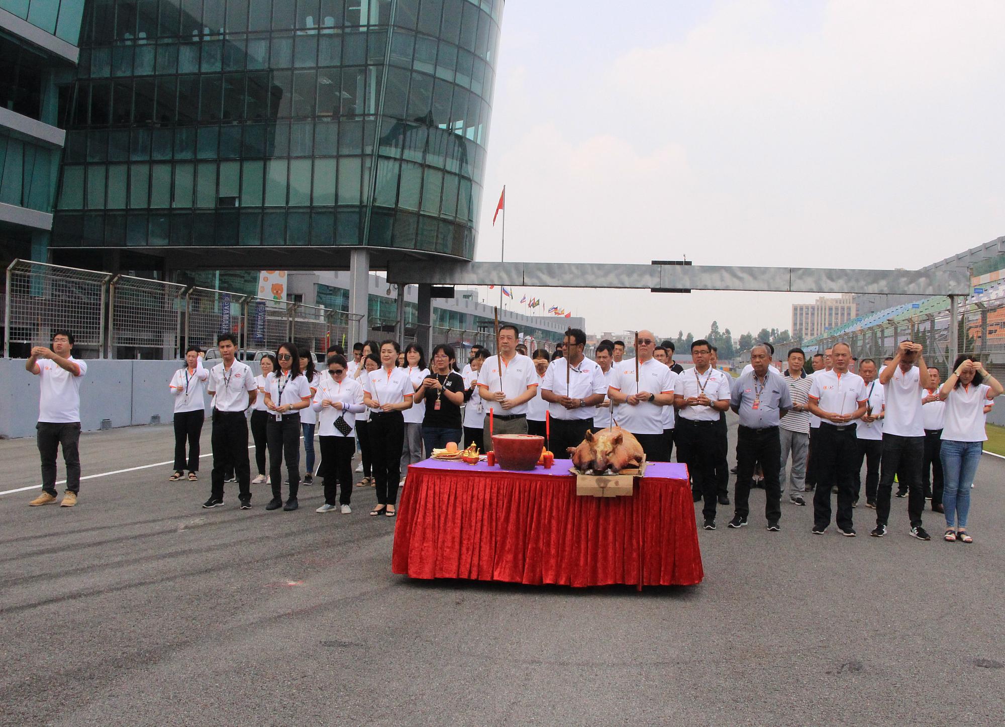 8月8日中午,亞洲公路摩托車錦標賽(ARRC)舉行賽事祈福儀式,祈求比賽期間天氣良好,并祝各車手,工作人員和觀眾在比賽期間萬事如意,平安大吉。