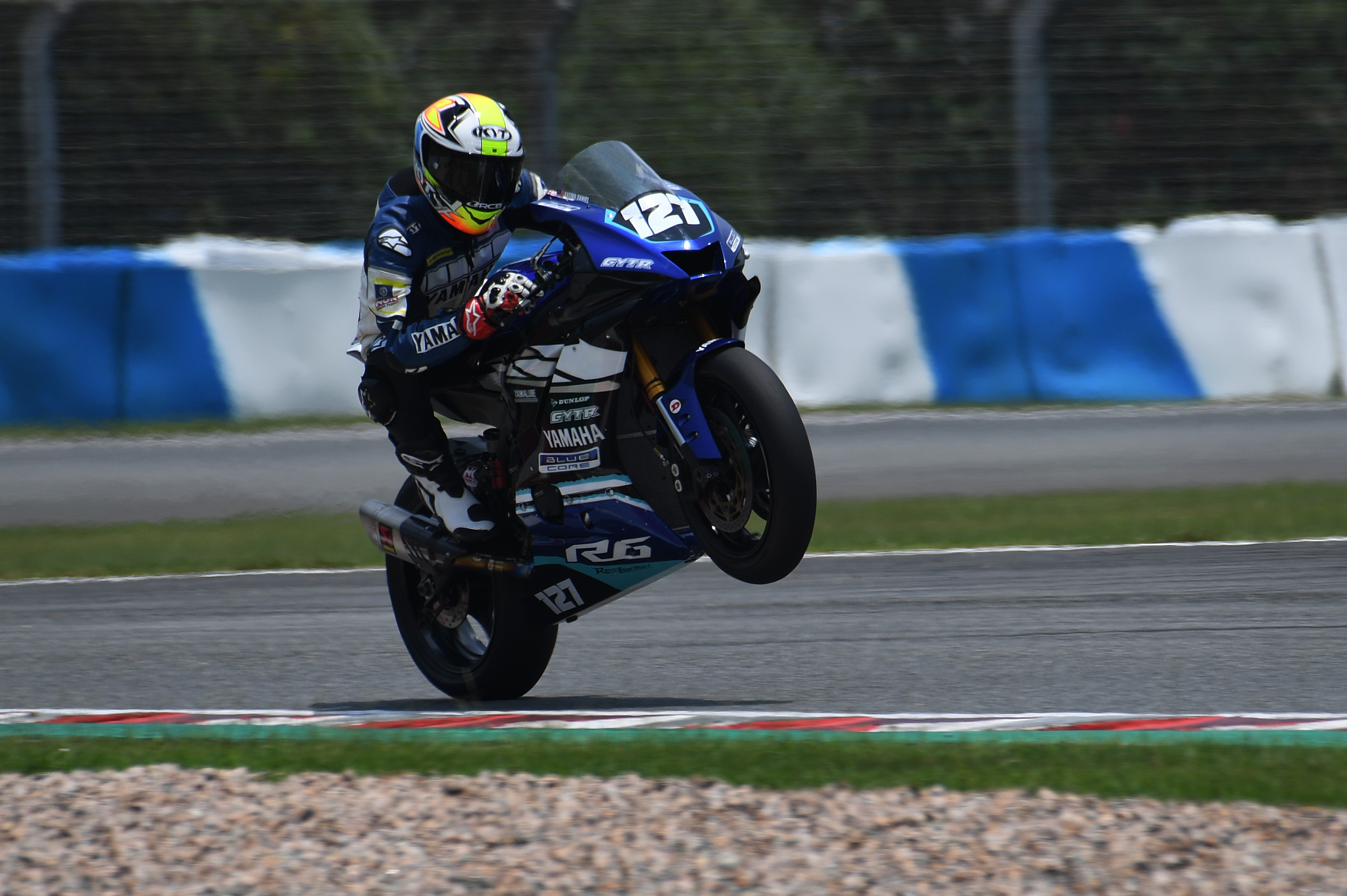核心提示:2019年亞洲公路摩托車錦標(biāo)賽,超級運動600cc組在第五站珠海國際賽車場的第一天練習(xí)中,馬來西亞車手127號卡斯馬 (Kasma Daniel K