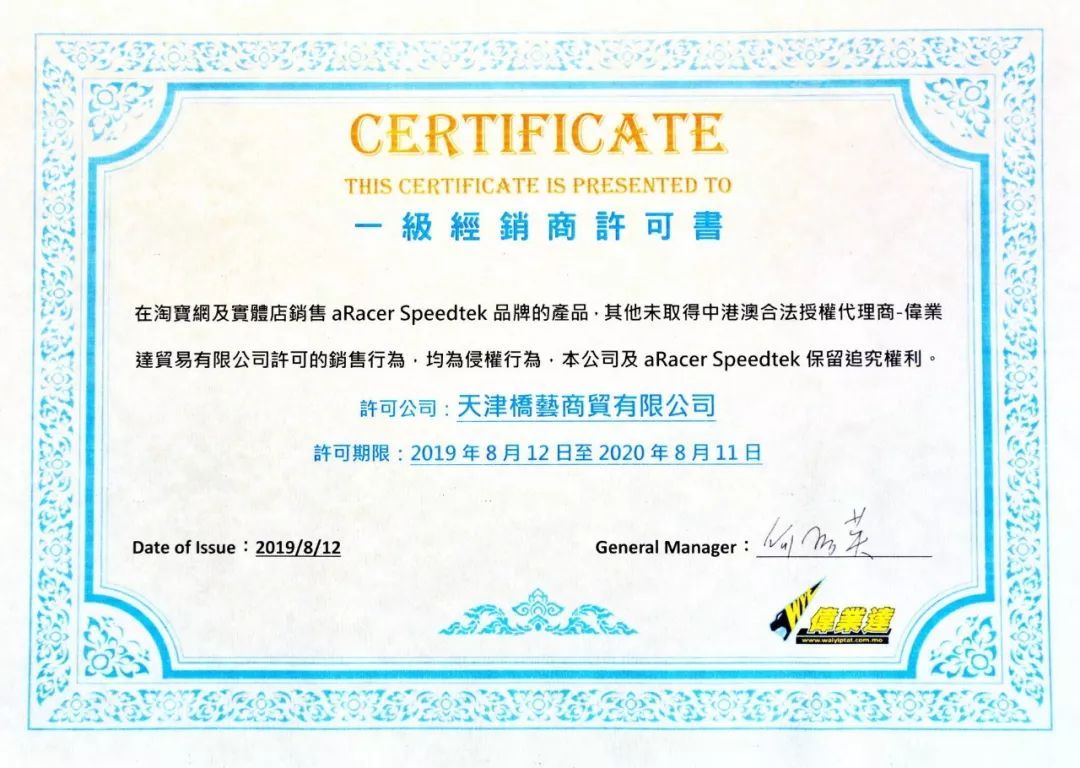 下圖:成為 aRacer 一級經(jīng)銷商、并獲得了基礎課程培訓證書的參與者 — 天津橋藝賽車俱樂部(天津市北辰區(qū)天穆都市產(chǎn)業(yè)園天廣路10號,鐵東路儲運有限公司內(nèi),聯(lián)系電話:13502177857)。