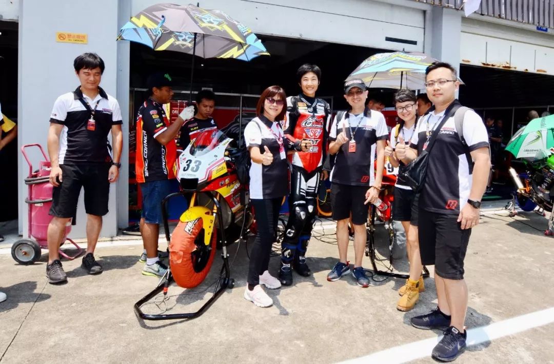 下圖:ARRC 珠海站,賽場里的劉君眉與 aRacer 專業(yè)支援團隊。