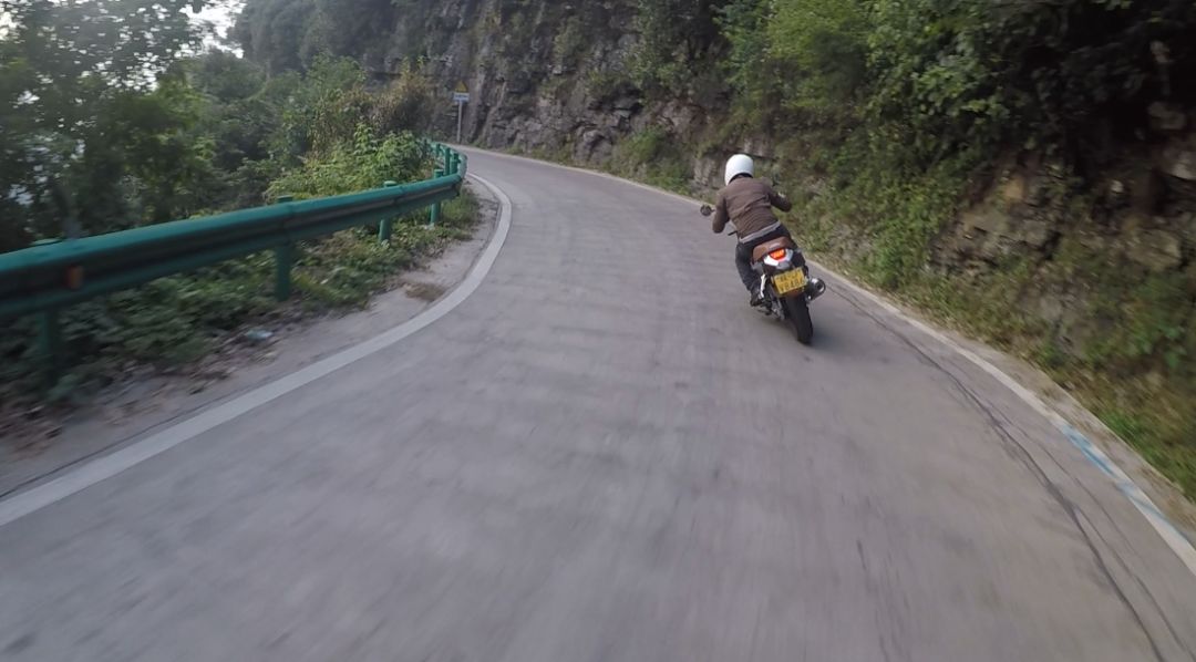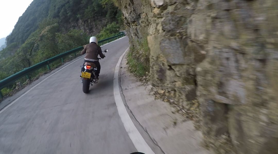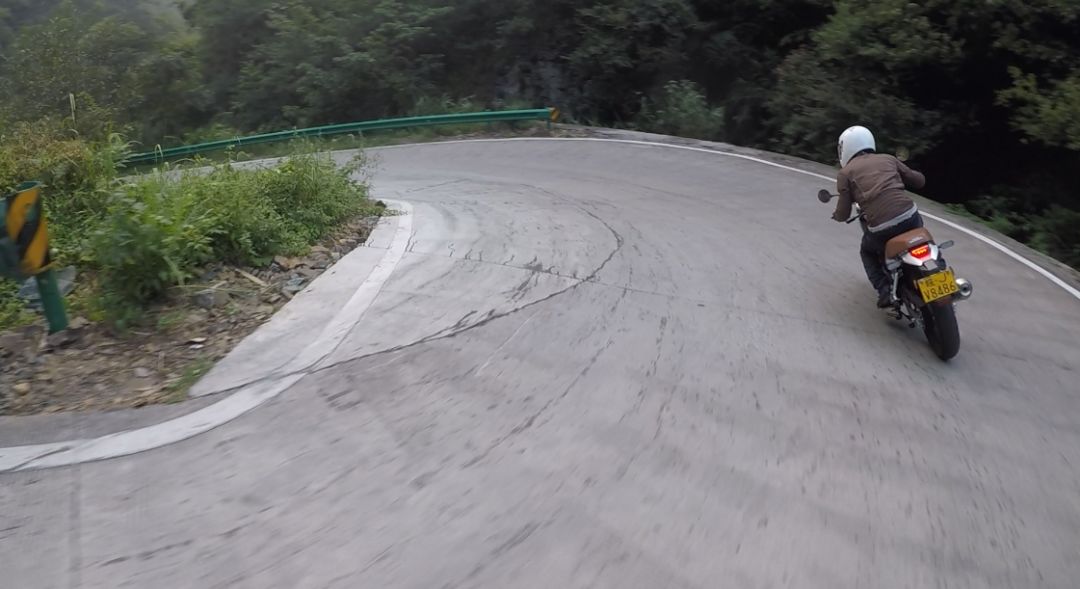 下午皖南川藏線的精華路段,也是各種彎道最集中的路段,非常多的回頭彎、發(fā)卡彎(半徑漸減彎),同時還帶有坡度。這段路我與杉田總同跑,杉田先生剛剛調任中國不久,此前曾在印度尼西亞、法國等地擔任高管。這次調任五羊-本田,也是為了能更好的發(fā)展中國市場,杉田先生身兼產品總監(jiān)及營銷總監(jiān)兩個職位,在新車型導入和開發(fā)方面有著極高的的話語權。有著30多年駕齡的他非常熱愛摩托車,騎車技術也很棒,從騎行風格來看是一位做事雷厲風行的人,途中停歇時,我也就大家所關心的問題以及廣大中國車友們的期望與杉田總進行交流,也為他介紹了一些國內摩托車市場的現狀,杉田總的回答還是讓人振奮的。