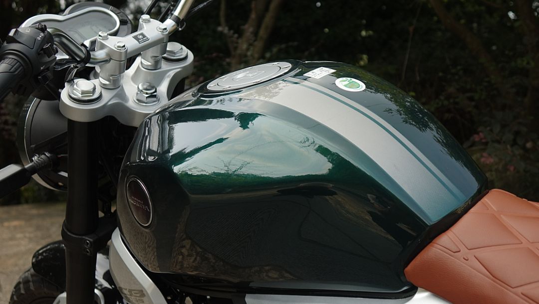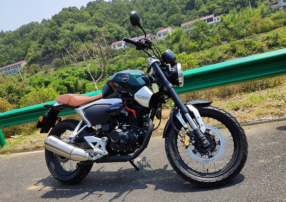 途中休息時,鷙道CB190SS搶眼的復古外觀經常會引起游客圍觀,我也經歷了無數次“摩托三問”——這是什么車?能跑多快?多少錢?我就一遍遍的給路人介紹,鷙道CB190SS是五羊-本田的一款全新車型,外觀方面繼承了本田全新CB系列特點,有著圓頭燈、雙儀表、有棱角的油箱以及復古的車座,而輻條輪搭配龜背胎也讓這款車有了更多的適應性和可玩性。復古車最講究格調,而細節(jié)是體現格調的方式之一,比如頭燈內的布局設計、儀表的布局設計、油箱上的浮雕LOGO以及不銹鋼排氣上的刻印型號,還有車座的質感和紋理,甚至是前擋泥板的金屬支架都讓這款車在細節(jié)上更考究。