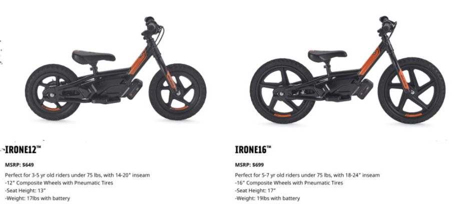 這兩款產(chǎn)品上面除了哈雷的LOGO和后平叉的風(fēng)格之外,很難在發(fā)現(xiàn)哈雷的影子。其產(chǎn)品命名是根據(jù)車輪的大小,12寸與16寸分別對應(yīng)不同的年齡層。IRONe12定價649美元,僅重7.7kg、座椅高度33cm,適合3 -5歲的小朋友。IRONe16的定價699美元,重約8.6kg,座高約43cm,適合5-7歲的小孩使用,而在動力輸出方面兩車則是有著微小差異。