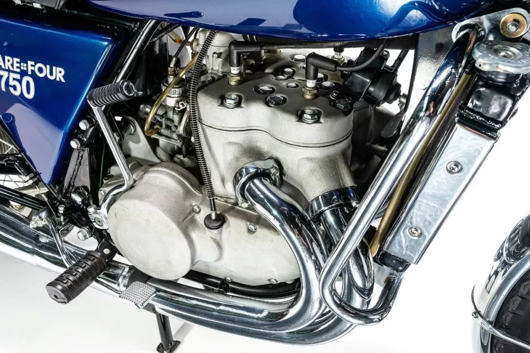 外觀方面,Square Four 750 的原型車采用了以 750SS Mach 為靈感的超薄油箱設(shè)計和方形儀表盤,而彎曲、優(yōu)雅的排氣管是設(shè)計上的亮點。只是,排放法規(guī)趨于嚴(yán)格之下,Square Four 750 在1973 年停止了后續(xù)的開發(fā)工作,這款高性能的機(jī)器、成為了市場上從未有過的款式。