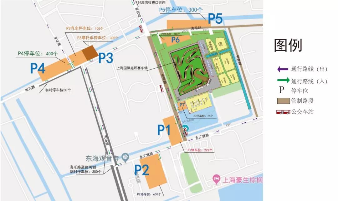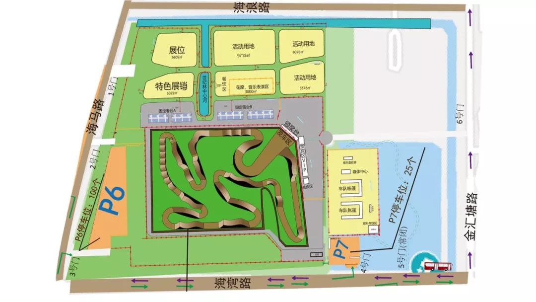 這里在提醒一句,目前所有導(dǎo)航上的“上海國際越野賽車場”都是在P7的位置,實際觀眾檢票入口在海馬路1號門,VIP觀眾入口在金匯塘路6號門,請各位合理安排導(dǎo)航!