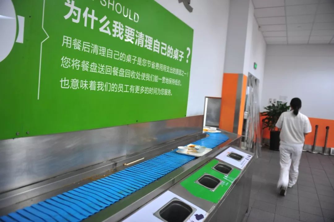 正是午飯時間,我們來到員工餐廳。這是一座現(xiàn)代化工廠里的現(xiàn)代化餐廳,近千人同時就餐也不顯擁擠,一溜兒排開的長長售賣窗口設置了合理的排隊等待區(qū)和取餐區(qū),各式菜品和主食琳瑯滿目、選取便利,還設有西餐、日式料理、自選套餐、地方特色甚至土家菜窗口。大廳一側還設有咖啡吧、超市……來到這里,口味再挑剔的人只怕也難有挑剔的理由了。尤值得一提的是,這座餐廳也最大限度地實現(xiàn)了自動化——餐具回收采用傳送帶的方式,節(jié)省人力提高了效率……