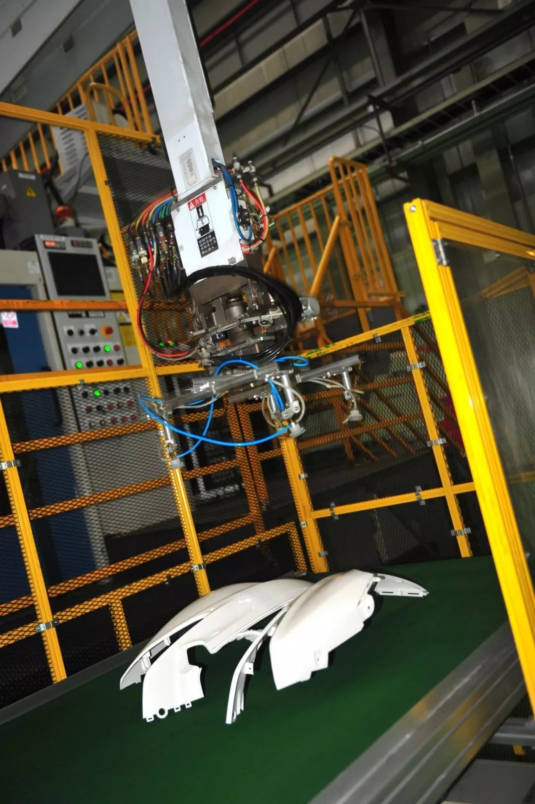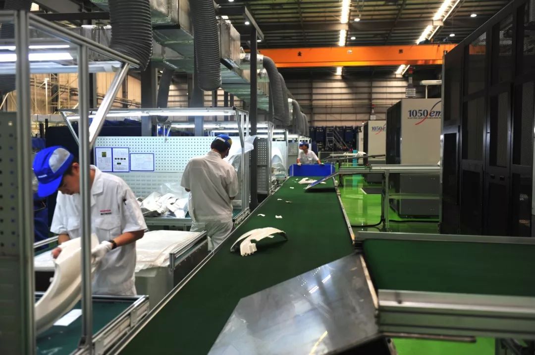 繼續(xù)往前走就是注塑車間了。在這里,你會看到龐大的進口三菱注塑機,靈巧的機械手臂在你眼前揮舞,將一只只成品注塑件放到傳送皮帶上。優(yōu)質原料加上業(yè)界頂級進口設備,讓一次成型的注塑件規(guī)整光滑,表面光亮如經(jīng)過精細的噴涂。事實上,這些車體覆蓋件還只是半成品,還要在質檢后送往噴涂車間進行與車身配色一致的涂裝和裝飾……