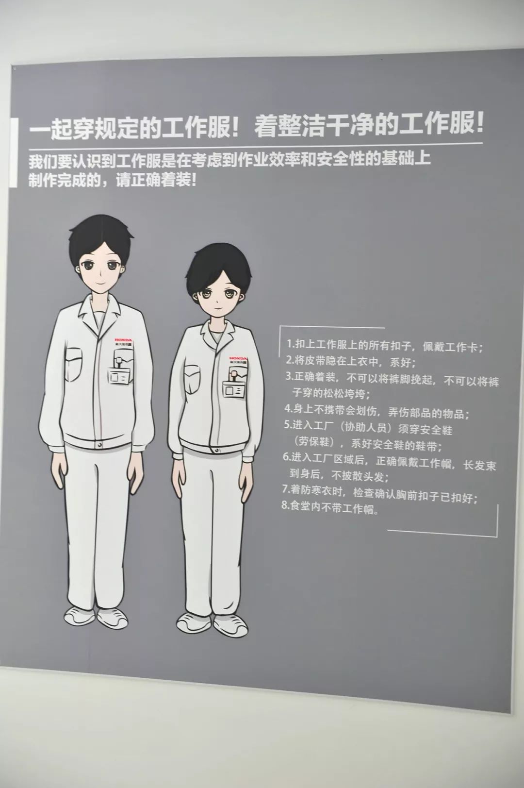 邊走邊看,心中漸漸涌起一個謎團,忍不住問旁邊陪同探訪的廠方工作人員:“工人們的工作服為什么這么干凈?洗衣的問題是怎么解決的?”這么問,真的不是無話找話。去過許多整車生產(chǎn)廠家,員工衣著整潔度能達到新大洲本田太倉工廠員工標準的,極其罕見。負責人的回答是:太倉工廠對員工的著裝標準有著嚴格的要求,并設有專人負責的洗衣房,為員工提供免費清洗和清理工作服的服務……