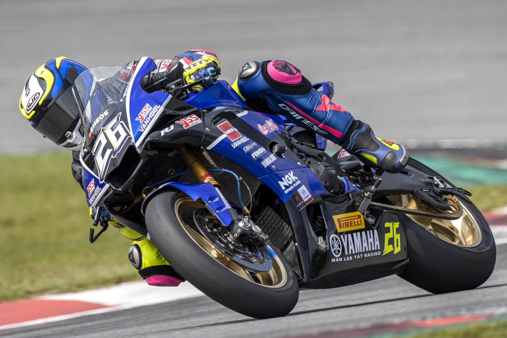 隨后進行的是1000cc組的排位賽,比賽于下午16時10分開始,總計10名車手參加。比賽一開始,來自雅馬哈萬里達車隊的26號李鄭鵬就展現(xiàn)出良好的競技狀態(tài),以1分35秒268占據(jù)頭名,99號歐陽富與來自雅馬哈萬里達車隊的59號何智鋒緊隨其后。