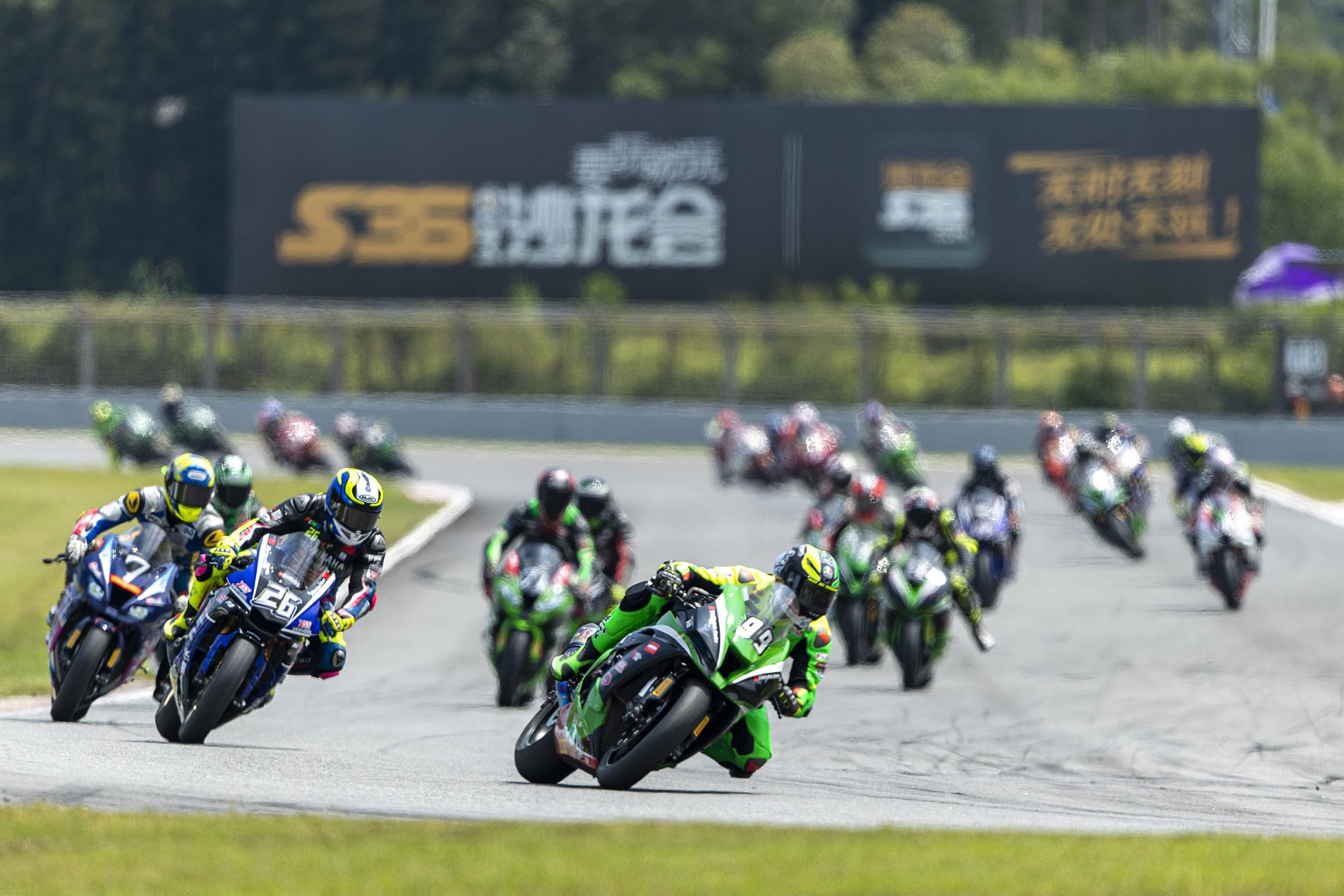 第二圈,李鄭鵬在1號彎成功超越歐陽富,再次領跑全場,同時做出全場最快單圈1分34秒779。從倒數(shù)第二位發(fā)車的雅馬哈萬里達車隊59號何智鋒接連上升20個位置,來到全場第5位。最后一位發(fā)車的雅馬哈萬里達車隊777號李宗暫時排在全場第18位。