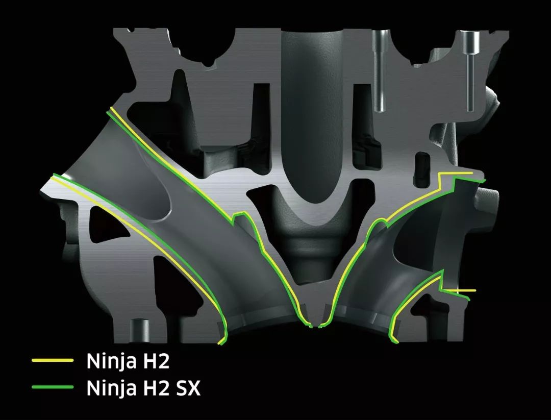 到了 2017 年年底的 EICMA 2017 米蘭車展,Kawasaki 發(fā)布了“ 普及型 ”的增壓直列四汽缸機器 H2 SX,最大動力輸出被調(diào)低至 200 匹(中國版/歐洲版),而價格則比 H2 標準版降了近 40%(美國市場的官方起步價,H2 $ 2.9 萬美元 vs H2 SX $ 1.9 萬美元)。