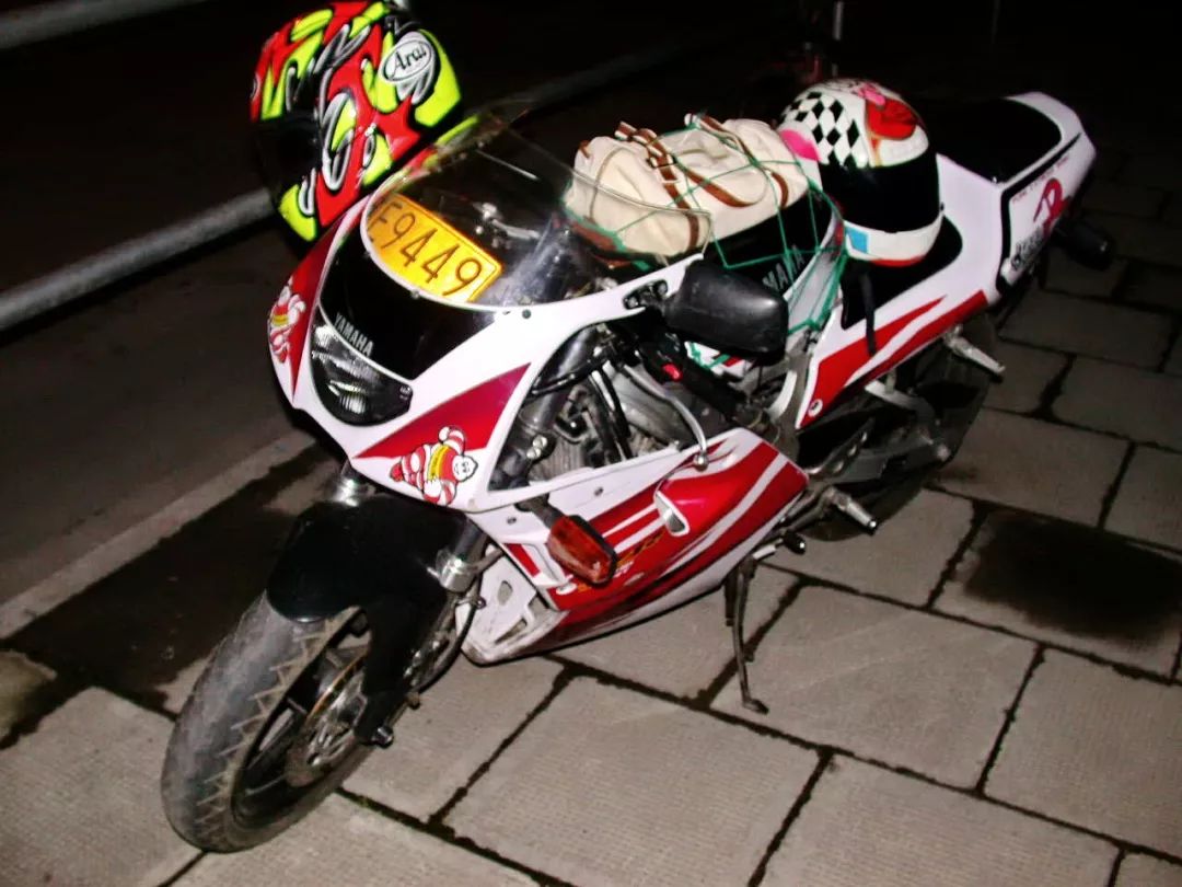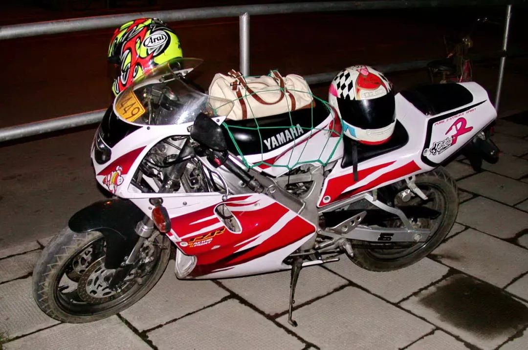 下面的老照片,是 2002 年八月的時候、出差到上海,路邊看到了一輛掛著滬 A 牌的日本版 TZR125 最終型。這輛車應該是經(jīng)過了改裝,前制動系統(tǒng)換了 TZR250 的雙碟式,若是標準車的狀態(tài)下、前制動系統(tǒng)是單碟的。