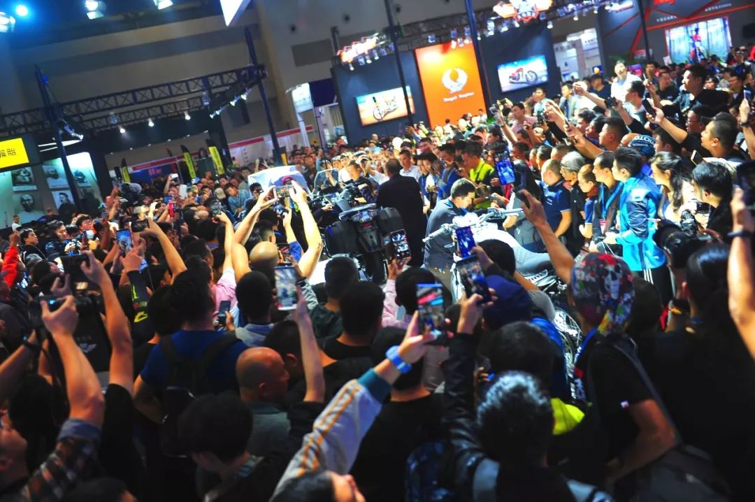 9月20日上午,悅來會展中心,第十七屆重慶摩博會N8展廳,宗申展臺。幾乎整個展館的觀眾都被吸引過來了,偌大的展區(qū)擁擠到人挨著人沒有插腳的空。