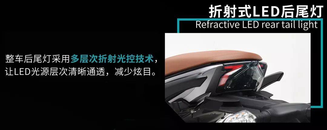 后尾燈采用LED折射式設(shè)計(jì),造型科技范十足, 多層次折射光控技術(shù)讓LED光源通過多層次折射,減少炫目效果。