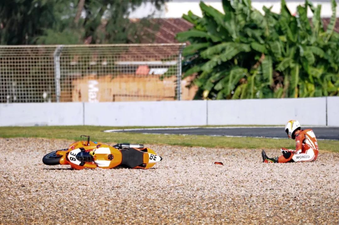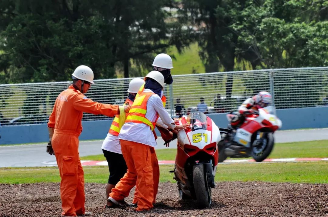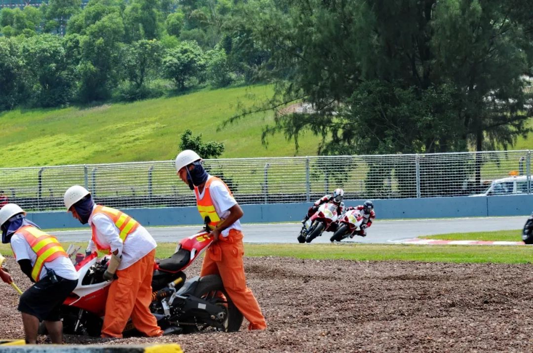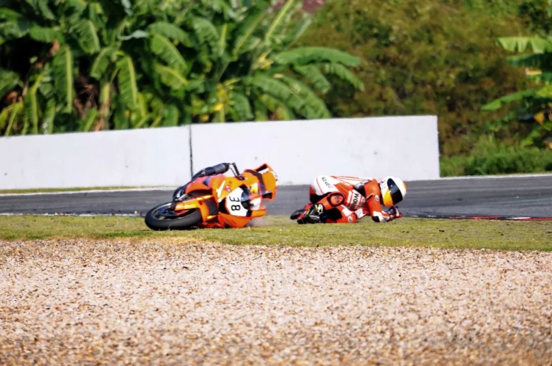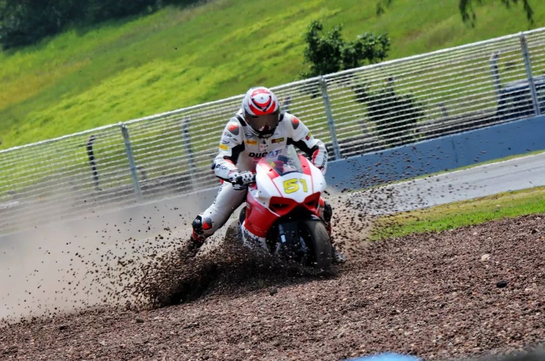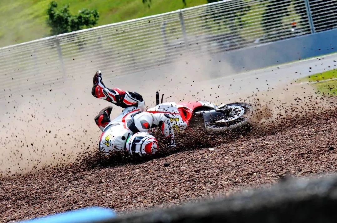 競爭激烈之下,不論是速度英雄(摩托車組)、還是 DCPC 杜卡迪(中國)超級杯挑戰(zhàn)賽,都發(fā)生了多次的摔車。得益于無論是場地設(shè)施還是車手的個人裝備,車手基本都無甚大礙,幾乎就是拍拍身上的塵土、就能自行回到自己的位置上。