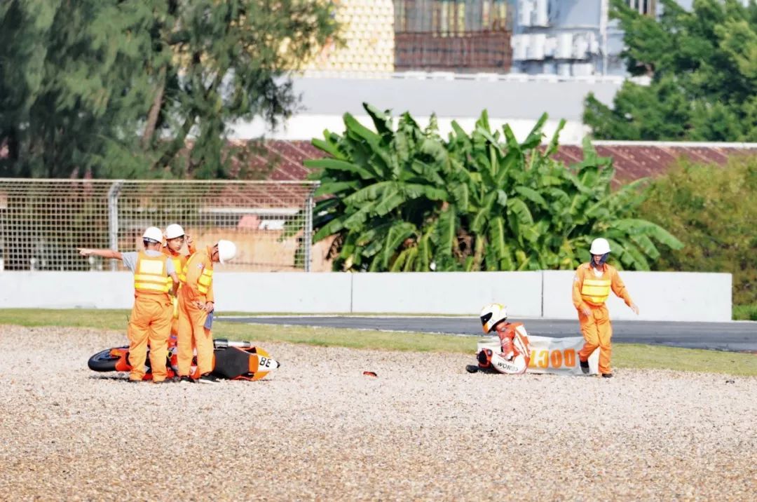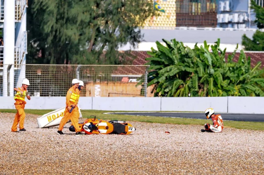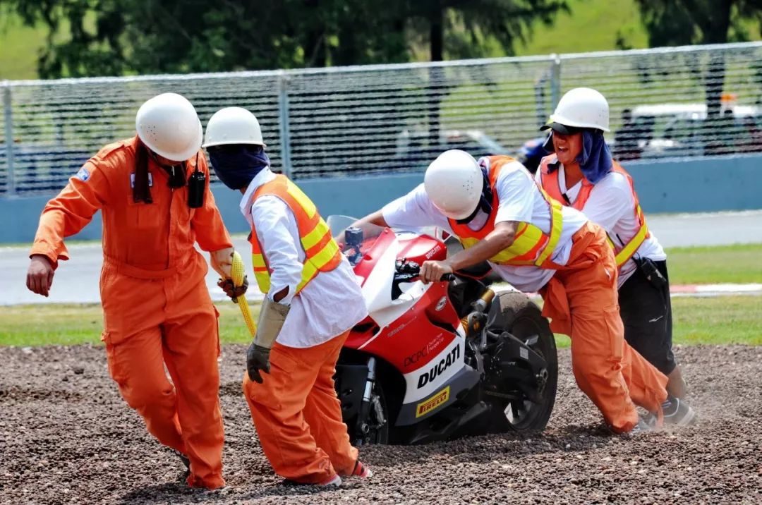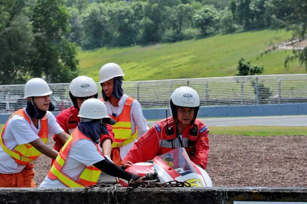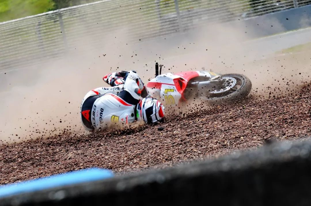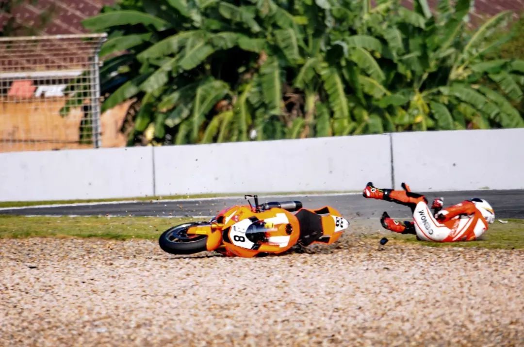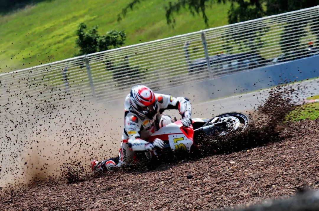 競爭激烈之下,不論是速度英雄(摩托車組)、還是 DCPC 杜卡迪(中國)超級杯挑戰(zhàn)賽,都發(fā)生了多次的摔車。得益于無論是場地設(shè)施還是車手的個人裝備,車手基本都無甚大礙,幾乎就是拍拍身上的塵土、就能自行回到自己的位置上。