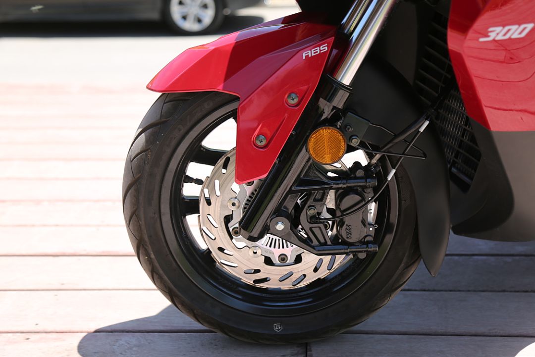 JOYMAX Z 300前制動(dòng)配備了對(duì)向四活塞輻射式卡鉗配260mm浮動(dòng)盤,后制動(dòng)單向雙活塞卡鉗配240mm制動(dòng)盤,從規(guī)格上來(lái)看在同級(jí)別中是比較豪華的,同時(shí)前后輪還標(biāo)配了進(jìn)口博世ABS系統(tǒng),進(jìn)一步提高制動(dòng)安全性。輪胎采用正新品牌的運(yùn)動(dòng)休旅胎,規(guī)格前120/70-14,后140/60-13。