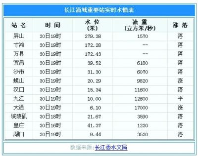 下圖:昨日17時(shí)長(zhǎng)江流域12個(gè)重要站實(shí)時(shí)水情表顯示,漢口站的水位為15.34米,水位繼續(xù)在下降,汽渡通航尚待時(shí)日。