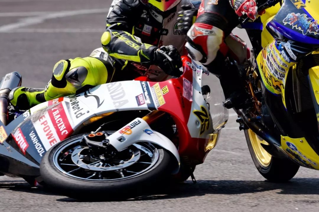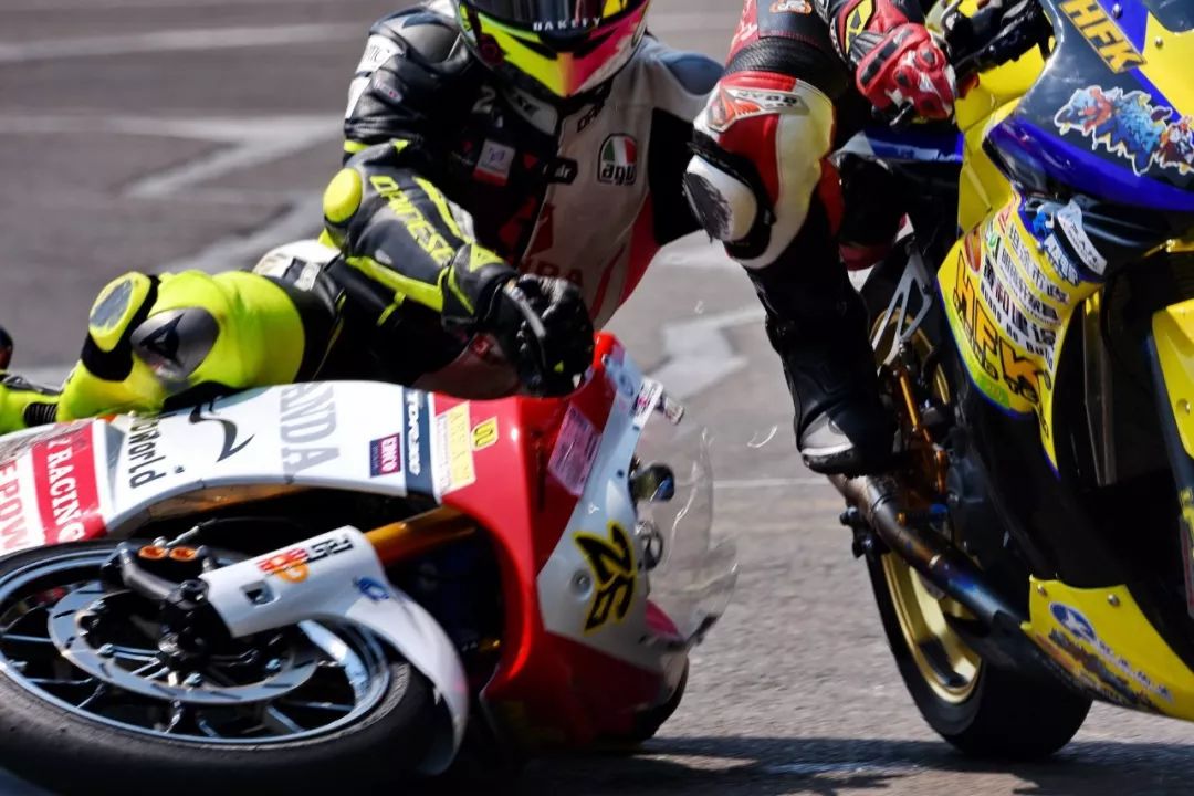 5、大約是在比賽的中段,進(jìn)入起跑/終點(diǎn)線前的最后一個(gè) U 彎,羅焌杰的硬契入、結(jié)果導(dǎo)致與胡通明的賽車發(fā)生了碰撞,羅焌杰摔倒、賽車受損;