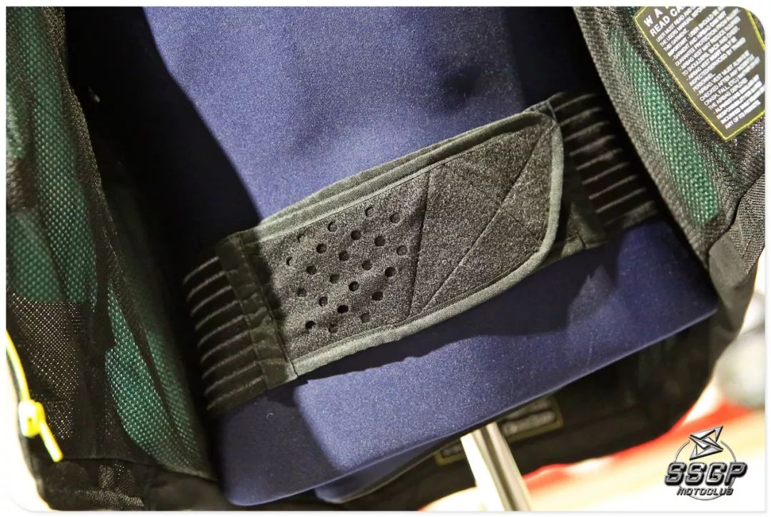 每張圖片中都可見的背多處皮質彈性拼接制作,確保美觀的同時將舒適性能提升至最高。(氣囊打開后的伸縮量也將由各處的彈性連接進行擴展,保障車手的舒適性?。?/span>