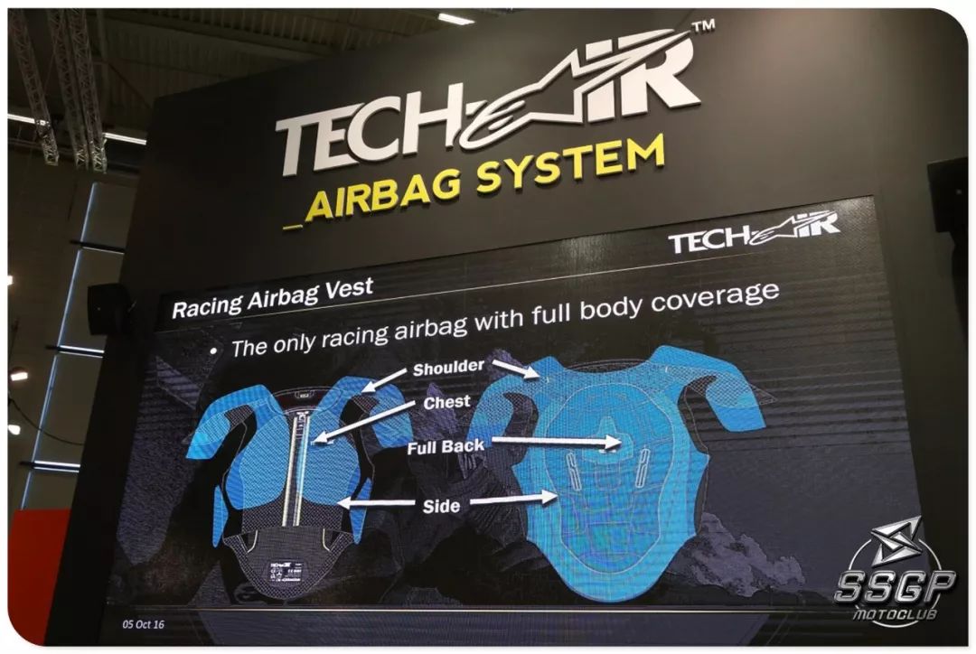 4、可以提供二次保護:TECH-AIR 配備了兩只氣瓶,賽道模式下發(fā)生事故時啟動一只氣瓶,第二只氣瓶待命,因此可以在不換皮衣的情況下繼續(xù)比賽。