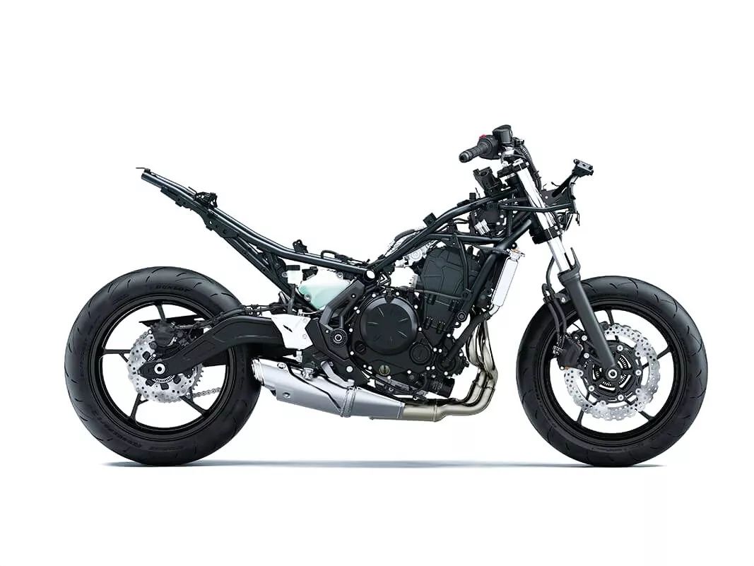 車體方面,沿用了一副鋼管式車架,叉芯口徑為 41 mm 的正立式前叉。與現(xiàn)行款相比,除了車頭、大燈的造型這個顯著的變化之外,新的 Ninja 650 還換裝了全彩的 TFT 數(shù)字式儀表板,換裝了 LED 的前后燈光系統(tǒng),新增了可與手機藍牙系統(tǒng)連接的功能、讓用戶可以使用 Kawasaki 自行開發(fā)的手機應(yīng)用程序 Rideology App,換裝了新型號的配套輪胎,更厚的(中央加厚了 5 mm、兩側(cè)加厚了 10 mm)、改善了舒適性的駕駛員座墊,以及采用了新樣式的車把開關(guān)。