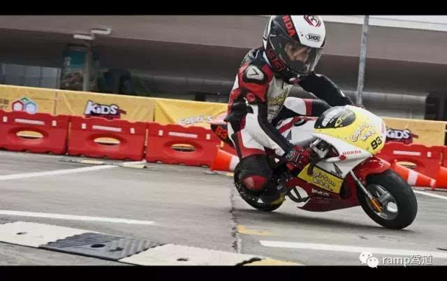 這位爬上杜卡迪的小車手叫Sky,年齡7歲,算比較大的車手了。爸爸是警察,爸爸對(duì)他寄予厚望,特別專業(yè)的指揮他超車,Sky騎得很棒,只是這次比賽不太幸運(yùn),不小心摔了一下,影響了成績。