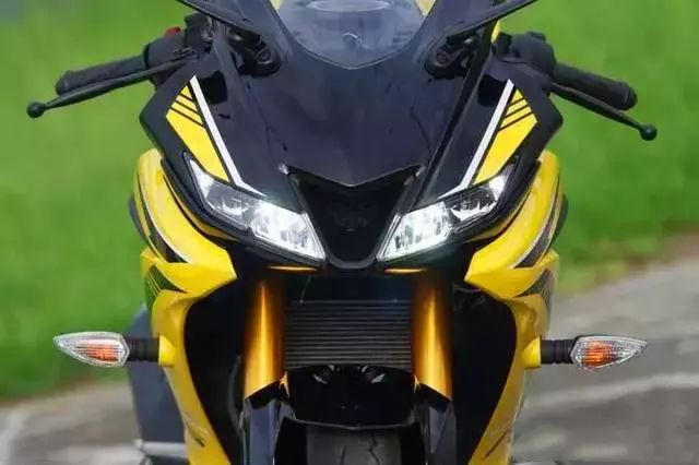 雅馬哈R15是一款出色的小跑車,在外觀設(shè)計上多采用家族式的元素設(shè)計,前臉采用造型銳利的LED頭燈,戰(zhàn)斗感十足,且照明效果出色。兩個前照燈側(cè)面有一個巨大的進氣口,這個只是為了裝飾,并沒有實際的功能,而風(fēng)擋的尺寸面積相當(dāng)可觀,在導(dǎo)流方面也能起到非常重要的作用。至于車身的尺寸,車子長寬高分別為1990/725/1135mm,軸距1325mm,座高815mm。