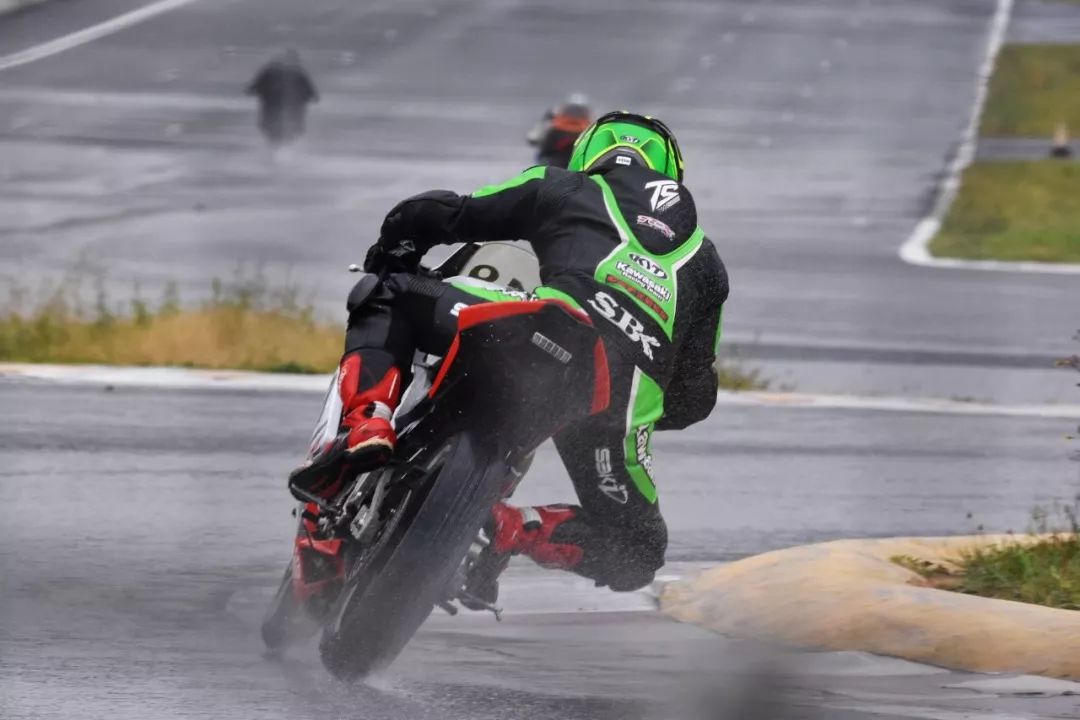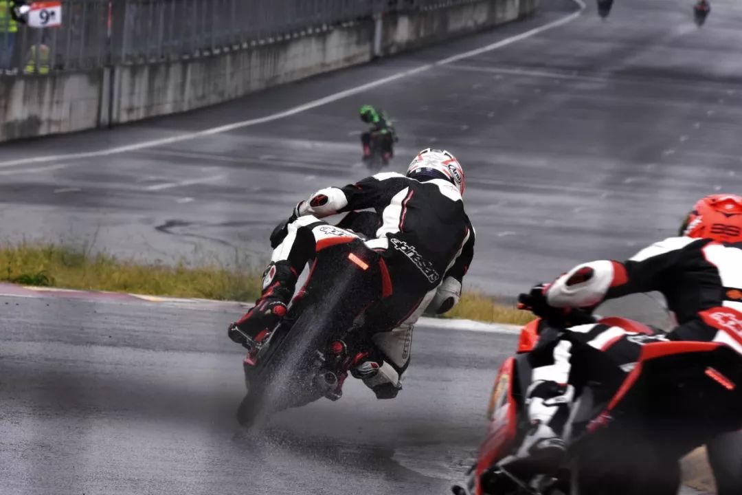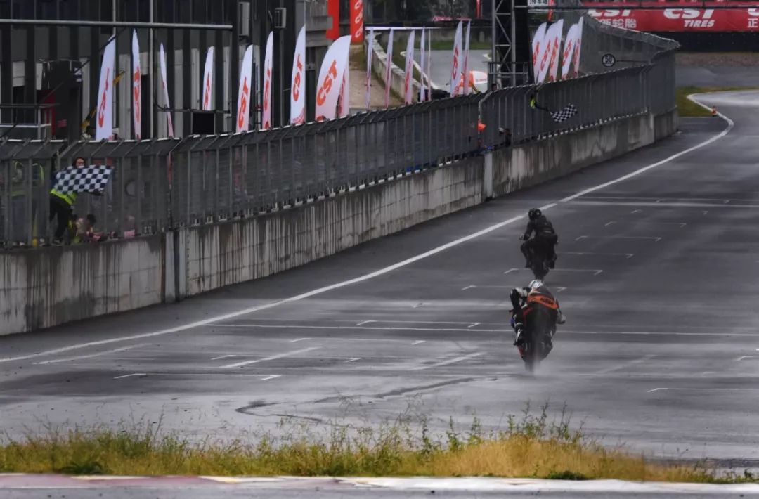 比賽的前段,李云在前、孫晗泊在后,兩人有過一翻近距離的追逐。隨著比賽進(jìn)行,雨勢時大時小,兩人都沒有放慢腳步的跡象。而兩人在雨中的進(jìn)、出彎動作,顯示出他們那經(jīng)過刻苦磨練的基本功。