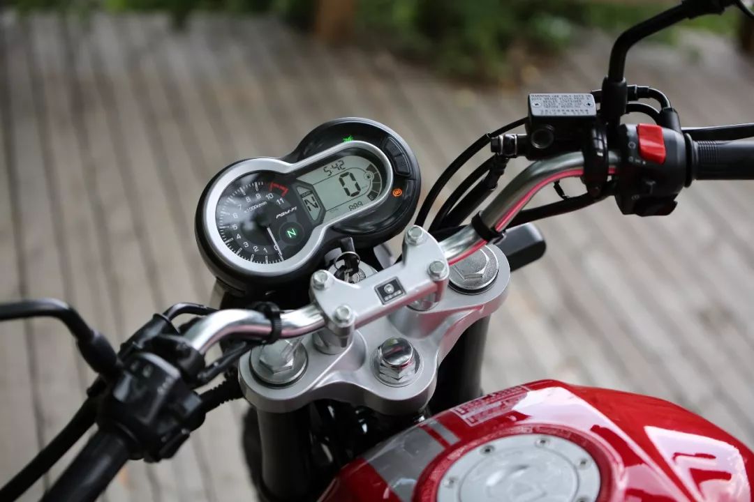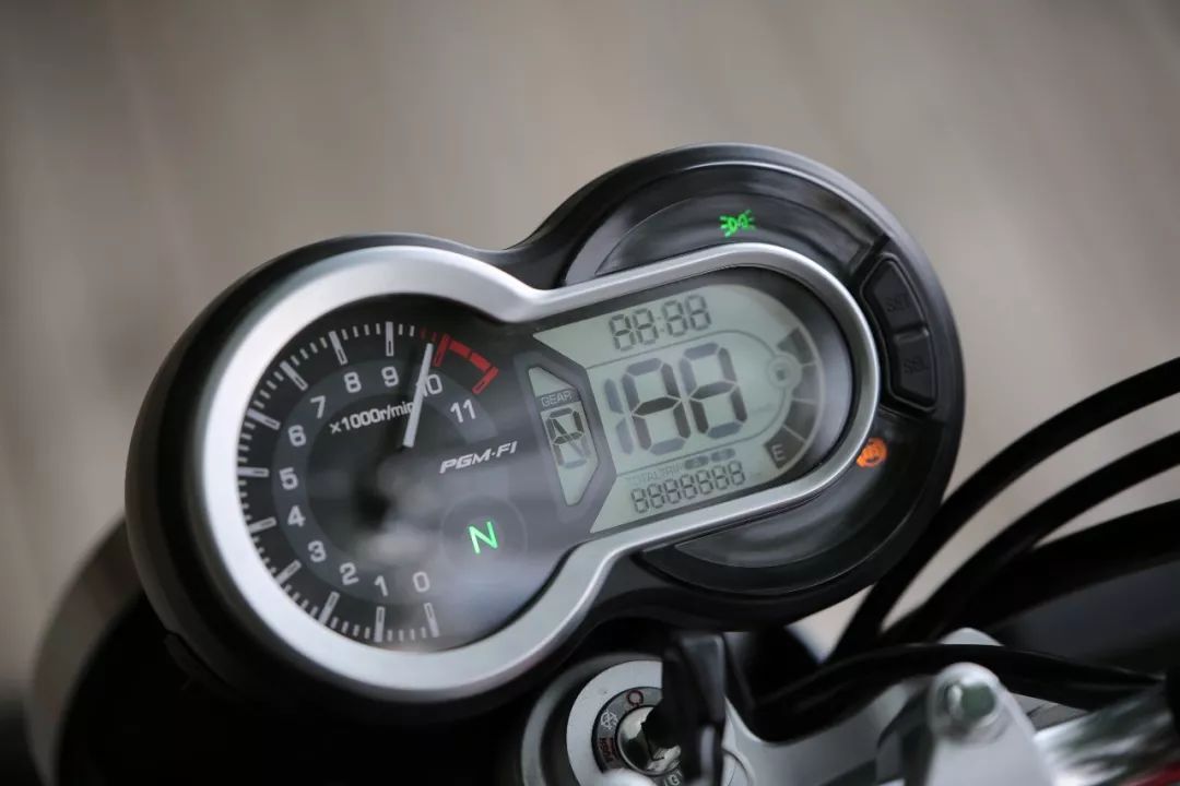 實用配置方面,雙圓儀表外形其實是液晶儀表搭配機(jī)械轉(zhuǎn)速表,儀表帶有擋位顯示,側(cè)面還帶有USB接口,同時左手車把也有雙閃開關(guān),這些配置也為這款車帶來更多實用性,非常人性化。