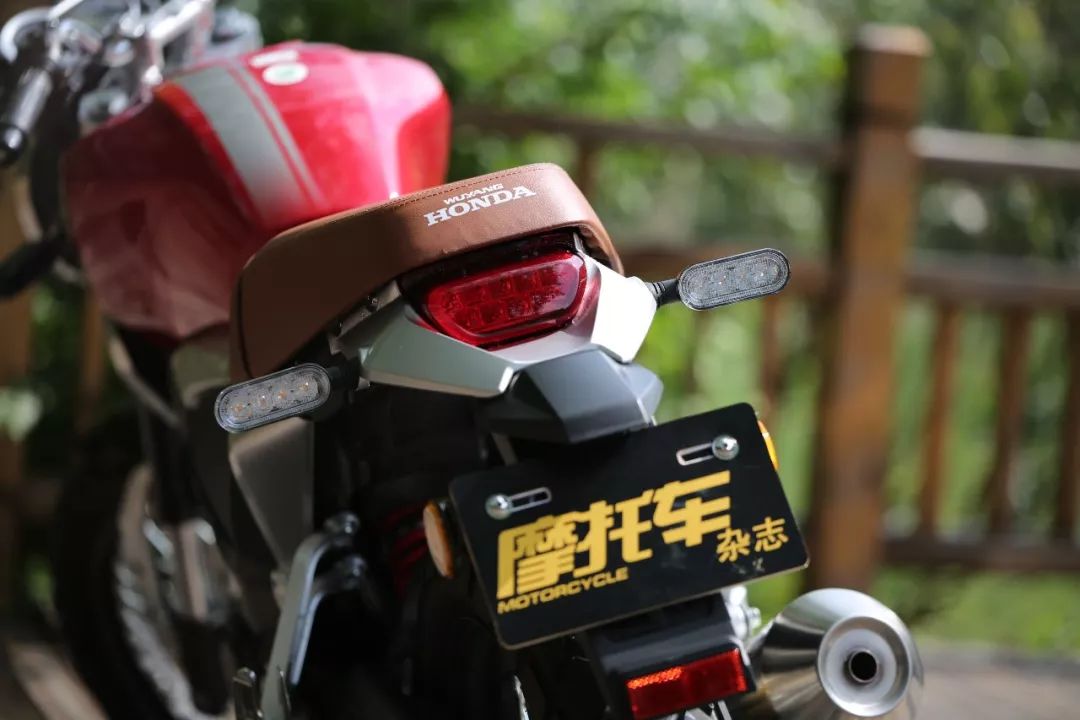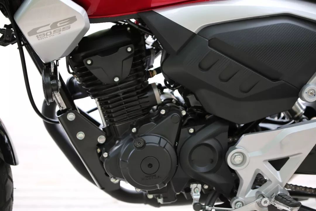 其它細(xì)節(jié)如油箱兩側(cè)的護(hù)板以及擋泥板和坐墊下方的裝飾板也都十分精致,甚至在排氣上還刻有CB190SS的字樣,整車的精致程度在同類車中都屬于出類拔萃,在外觀方面一點不輸大排量車型。