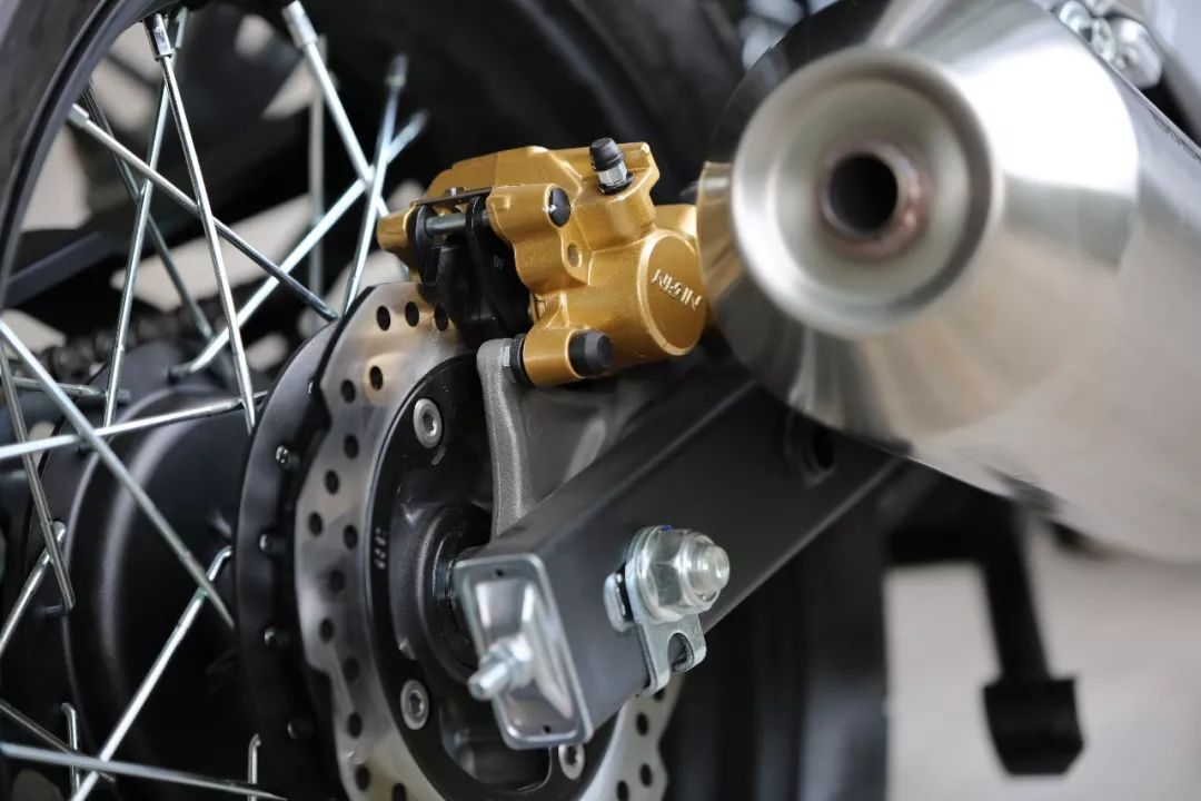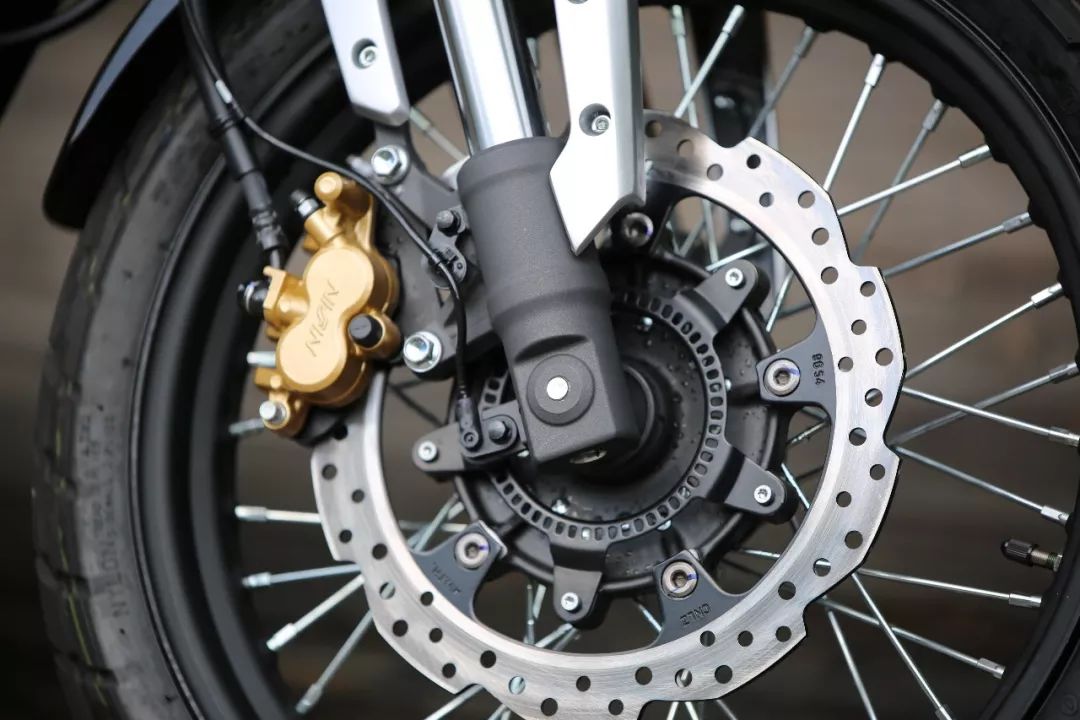 前減震系統(tǒng)換裝成了川南減震,制動系統(tǒng)也換成了Nissin卡鉗,同時給這款車還配有Nissin的單通道ABS系統(tǒng),既前輪帶有ABS系統(tǒng),而后輪沒有,這樣的配置雖然沒有雙通道ABS效果更好,但在一定程度上也能夠提高制動效率。