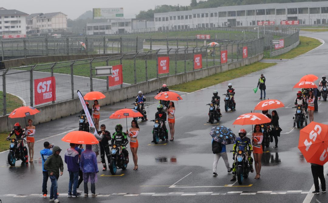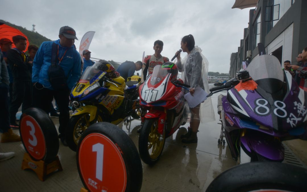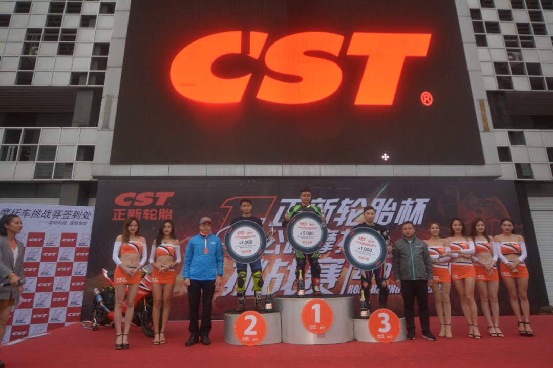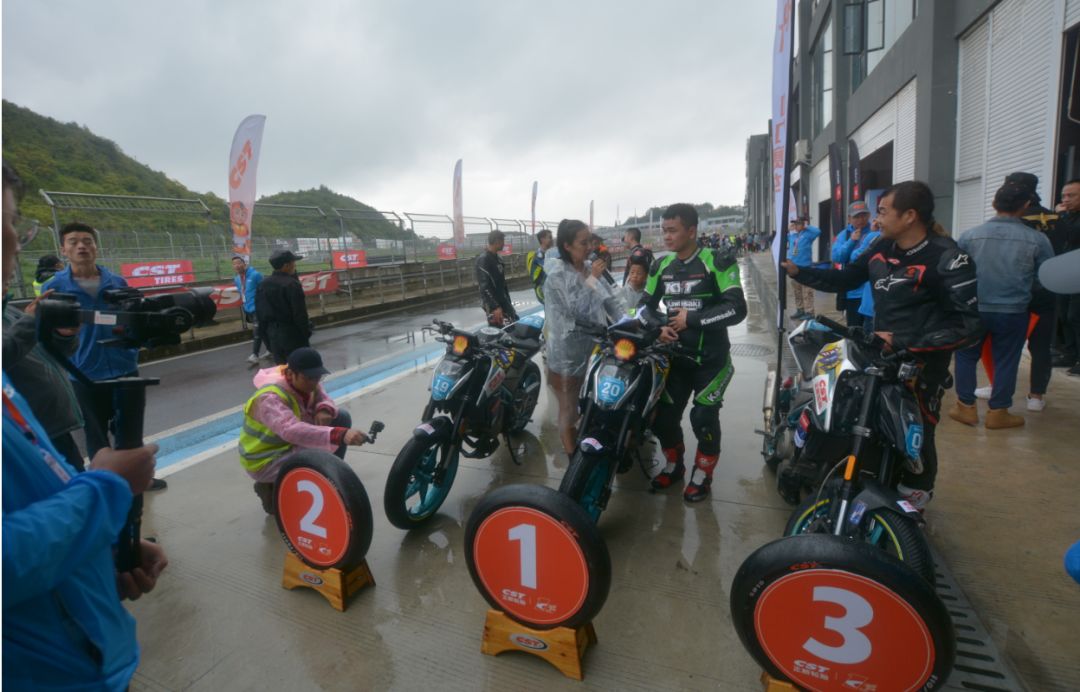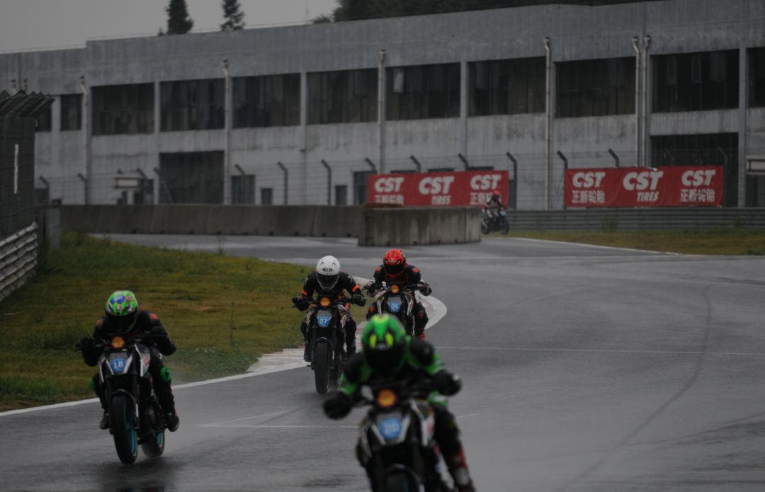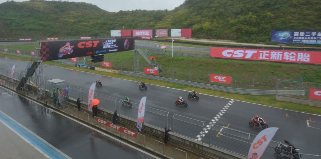 比賽開始,組別順序是:宗申比亞喬阿普利亞150統一組,公開250組,川崎Ninja250統一組,春風NK250統一組。盡管是大雨,也影響不了車手們對組別冠軍的爭奪。在比賽中的你來我往的穿插,為觀眾們帶來了一場雨中視覺盛宴,高速超車、一起拼晚剎車進彎、把車壓得更低等情況都是車手們對CST SR01水胎的了解與信任。