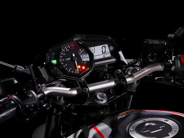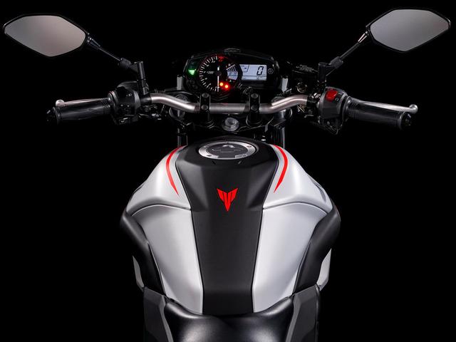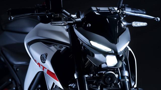 廠方為新車冠以 “ 激進(jìn)的下一代 MT 設(shè)計(jì)“ 之名,與現(xiàn)行款相比,換了一個(gè)與 MT-09 更相近風(fēng)格的車頭造型,具侵略風(fēng)格的雙斜眼式 LED 大燈,換裝了叉芯口徑為 37 mm 的倒立式前叉,全數(shù)字式的儀表板,是新一代 MT-25/MT-03 的重大變化。