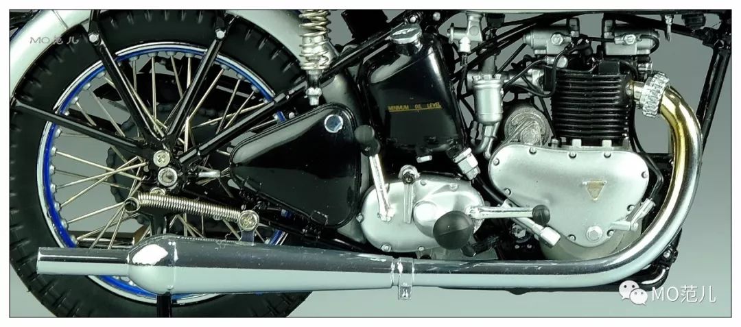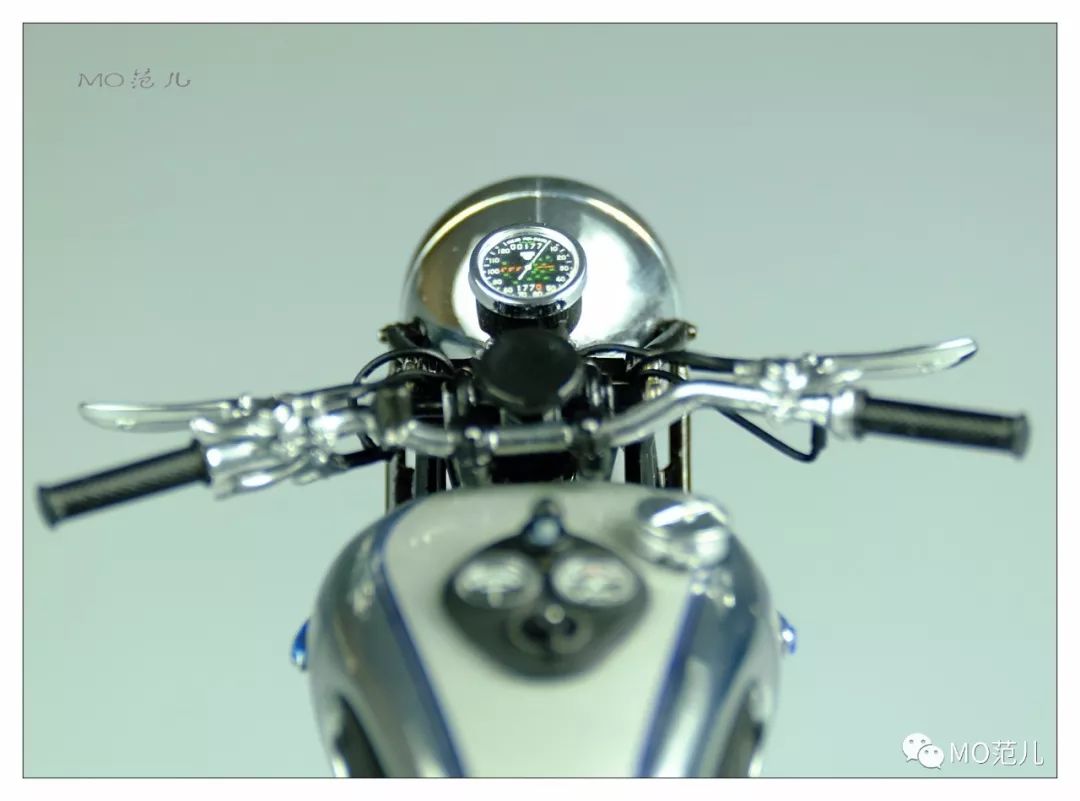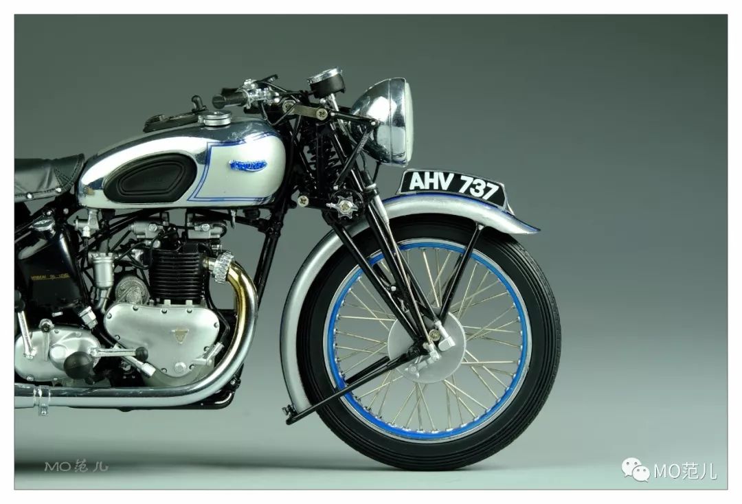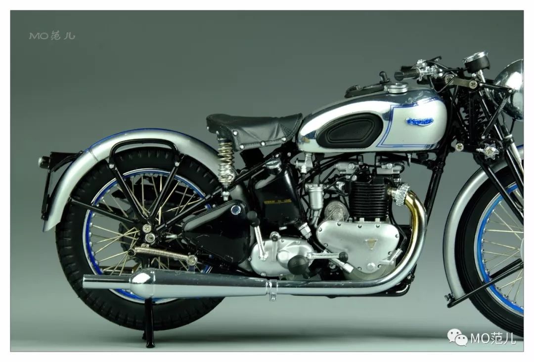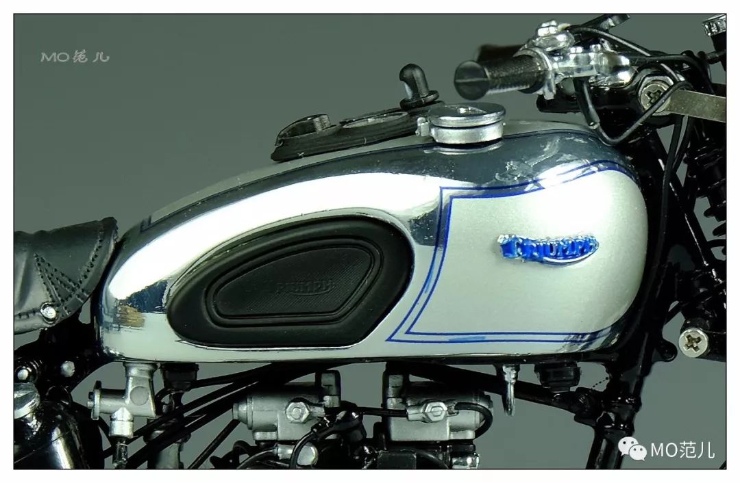 尤其是貼在油箱兩側藍色的金屬“Triumph”Logo,更是畫龍點睛之筆,令人難忘!