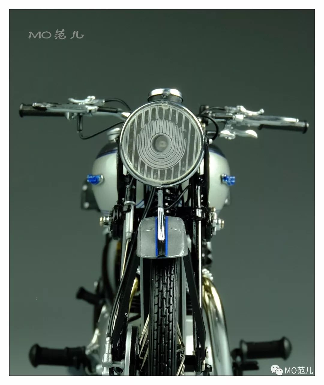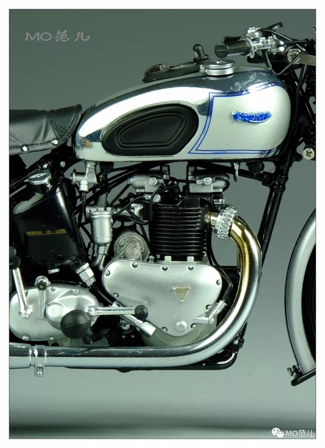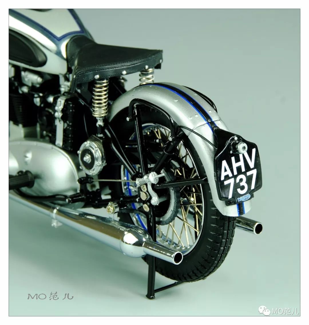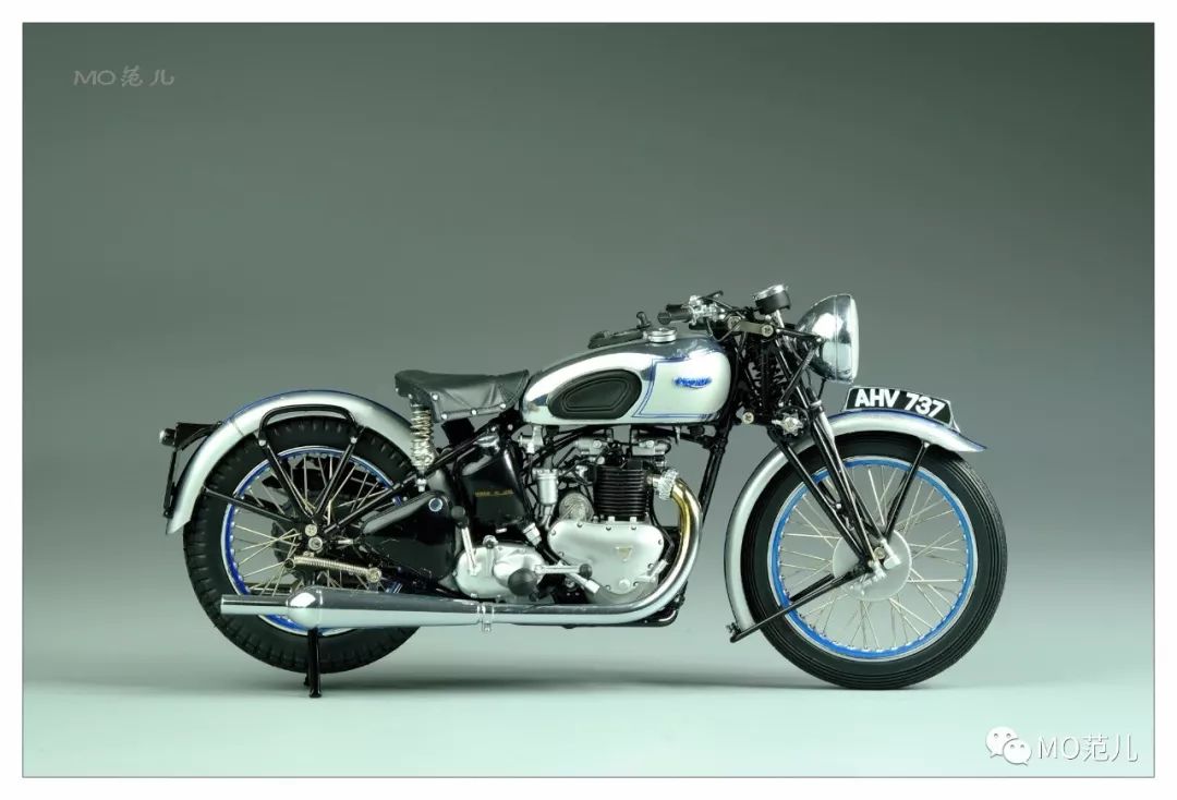 尤其是貼在油箱兩側藍色的金屬“Triumph”Logo,更是畫龍點睛之筆,令人難忘!