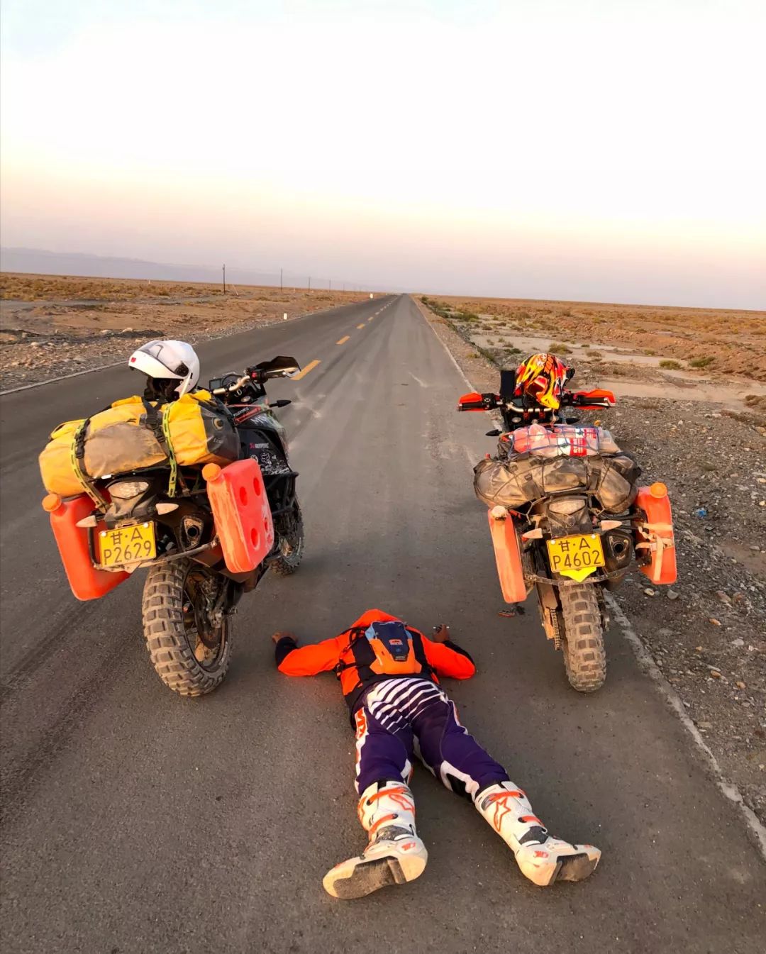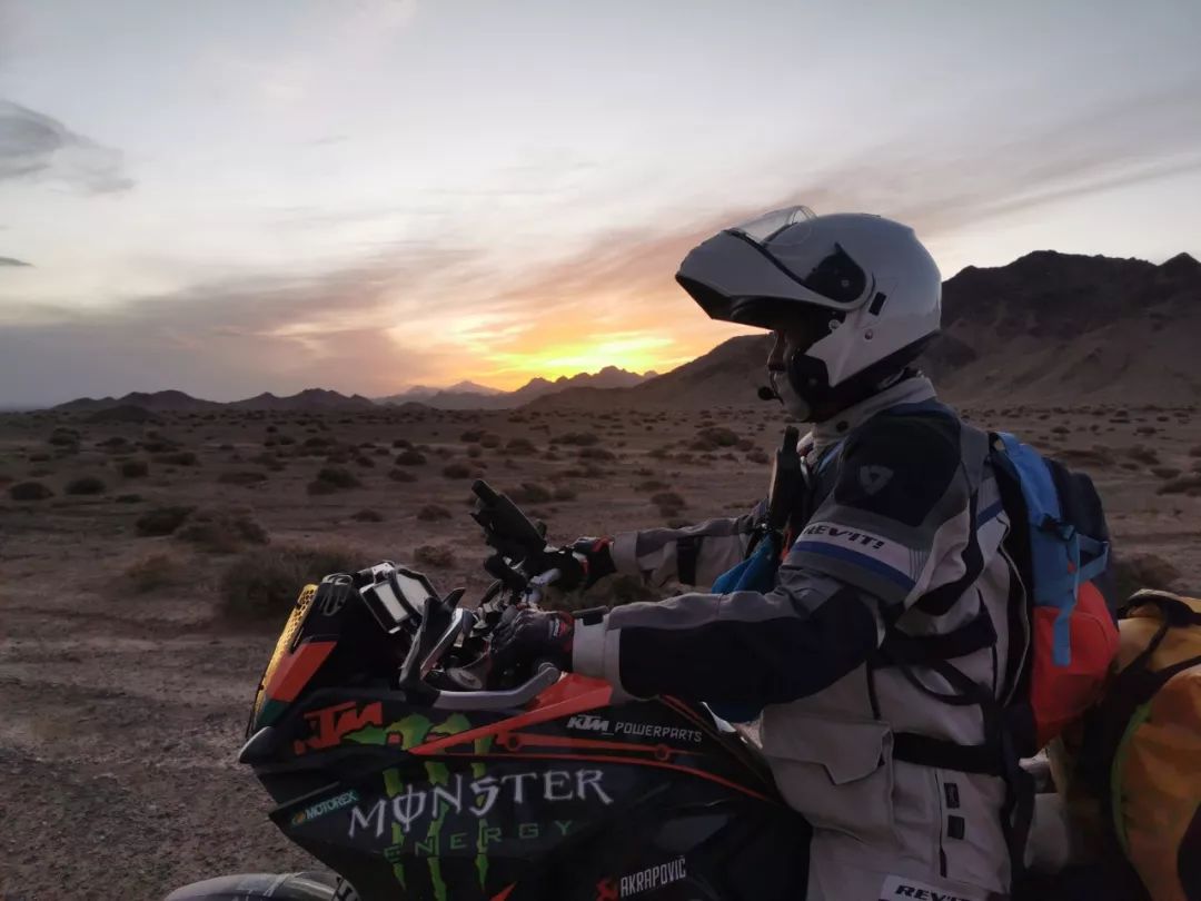 越來越深入無人區(qū),天色也漸晚,四周一片死寂,只有KTM強勁的引擎和風聲在狂吼,仿佛整個世界只剩下我們。孤立無援的寂寞、對大自然的敬畏、晝夜溫差帶來的寒冷一擁而上。
