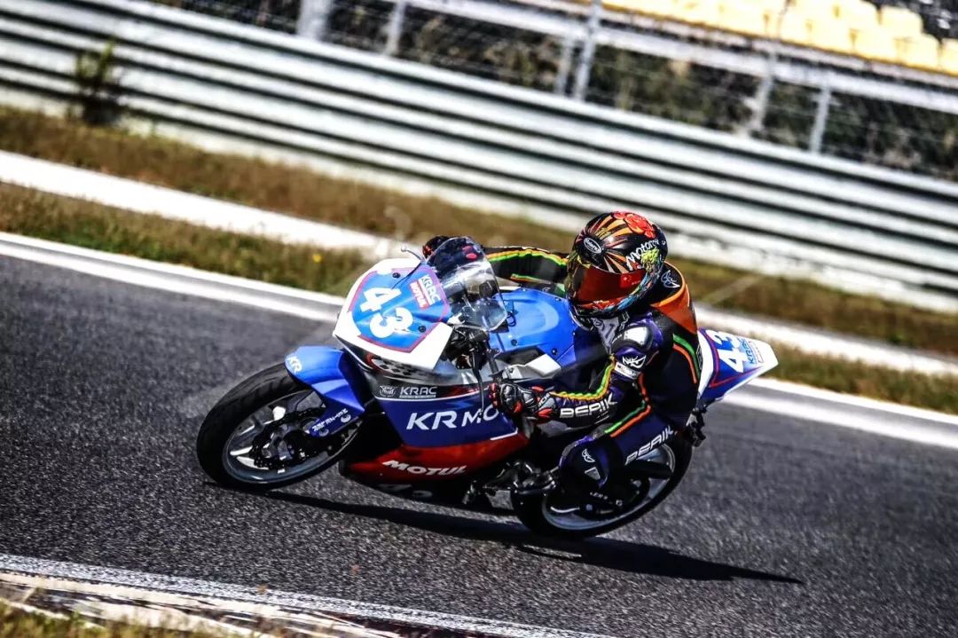 該組別的比賽、統(tǒng)一使用 KR GD250R 賽車。華 RACING 有著國內(nèi)最快女車手之稱的陳玲,參加的 KRAC 組別遇到了韓國最快女車手的挑戰(zhàn),排位賽二人分別位于二、三位,但陳玲有著接近 1 秒的大幅優(yōu)勢。排位賽的時候,陳玲一度刷到了第一位,最后時刻、被 1 號韓國選手刷新了新的圈速記錄、最終排在第二位發(fā)車。而圈速能夠跑進(jìn) 1 分 38 秒的車手,就只有包括陳玲在內(nèi)的前面這兩人。