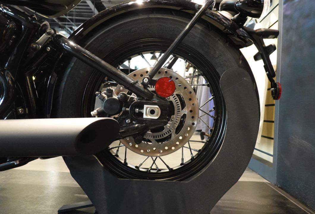 整車(chē)動(dòng)力方面采用的是最新款Bonneville T120的發(fā)動(dòng)機(jī),排量1200mL的液冷并列雙缸SOHC 8氣門(mén)發(fā)動(dòng)力,最大功率57kW,4000轉(zhuǎn)能爆發(fā)106N·m的最大扭矩。Bonneville Bobber配備了離合器輔助系統(tǒng),讓騎手操作離合器拉桿時(shí)更加輕松。標(biāo)配ABS,同時(shí)配備多段可調(diào)的牽引力控制系統(tǒng)(TC)和公路、雨天兩種騎行模式,以及定速巡航系統(tǒng)。