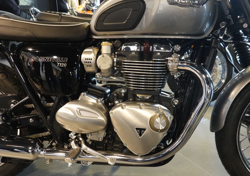 性能方面T120和T120 Black采用了并列雙缸1200mL水冷8氣門(mén)發(fā)動(dòng)機(jī),6擋變速箱。發(fā)動(dòng)機(jī)的設(shè)計(jì)精心保留了19世紀(jì)60年代的Bonneville造型元素。最大扭矩為105N·m(3100r/min)比上一代提高了54%,最大馬力59kW(6550r/min)。同時(shí)還增加了ABS系統(tǒng)(可關(guān)閉)、牽引力控制系統(tǒng)(可關(guān)閉)、滑動(dòng)離合器以及騎行模式選擇(雨天、公路)。