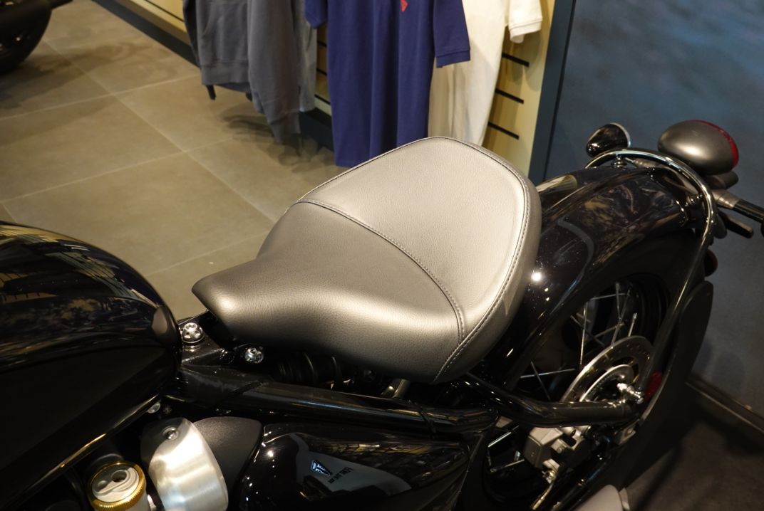 接下來(lái)是Bonneville Bobber,Bobber風(fēng)格起源于美國(guó),是經(jīng)典的美式風(fēng)格,相比英倫含蓄而紳士的造型差別很大,但隨著時(shí)代的發(fā)展,夸張的美式風(fēng)格更受年輕人的歡迎,這也是凱旋推出美式風(fēng)格復(fù)古車(chē)款的原因之一。雖然是粗狂的Bobber風(fēng)格,但凱旋還是造出了自己的風(fēng)格,車(chē)把沒(méi)有夸張的抬高,車(chē)座降低,營(yíng)造出Bobber風(fēng)格的曲線,沒(méi)有那種隨意的拆卸風(fēng)格,整車(chē)看上去還是有著抹不掉的英倫風(fēng),從風(fēng)格角度講,這款Bonneville Bobber并不純粹,但從品牌角度講,這就是凱旋,也更加符合英國(guó)人的駕駛風(fēng)格。