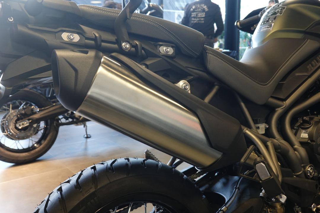 最后一款則是凱旋新款中量級(jí)ADV——Tiger 800 XCA,新款Tiger 800在外形上做了改變,頭燈的設(shè)計(jì)在米蘭展上引起了較大的爭(zhēng)議,原來(lái)標(biāo)志性的雙頭燈中加入了一條LED燈帶,讓它不再“呆萌”,瞇起眼的小表情明顯讓一些人接受不了。不過(guò)這也讓Tiger 800更加獨(dú)特、與眾不同。