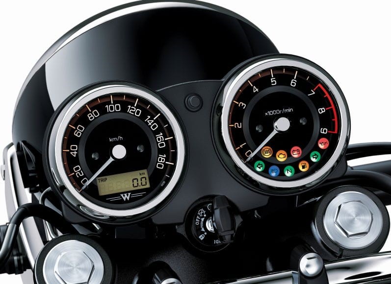 經(jīng)典的雙鏡頭儀表是專用的表盤,其使用與W800的設(shè)計相匹配的字體。