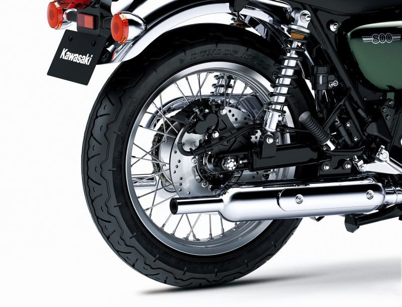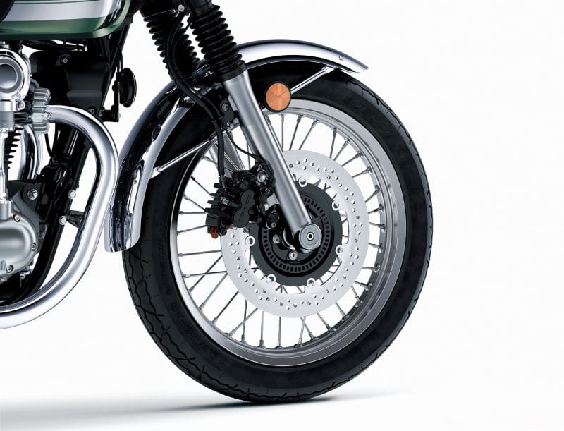 與Street和Cafe型號的18英寸車輪相比,W800的前部采用19英寸輪輻車輪,較大的車輪提供了更復(fù)古的感覺,但不像其他W800車型那樣具有運(yùn)動性,因此優(yōu)先考慮輕度轉(zhuǎn)向和直線穩(wěn)定性,而不是操縱。