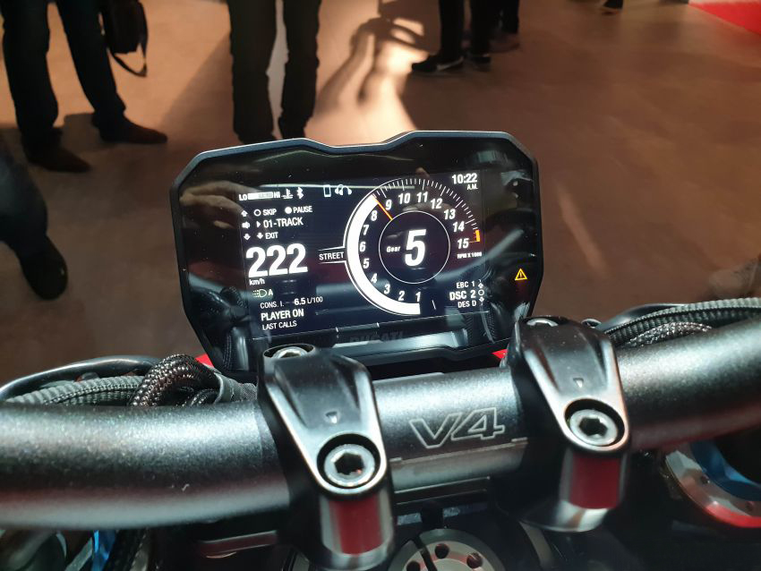 StreetFighter V4配備了杜卡迪公司提供的最先進(jìn)的電子系統(tǒng),包括:6軸IMU,轉(zhuǎn)彎ABS,牽引力控制,牽引力控制(滑動控制),車輪控制,啟動控制(啟動控制),發(fā)動機(jī)制動控制(發(fā)動機(jī)制動控制)和最新的防滑系統(tǒng)(QuickShifter),3種標(biāo)準(zhǔn)駕駛模式(賽車/運(yùn)動/街道),所有這些都通過5英寸的TFT屏幕顯示。
