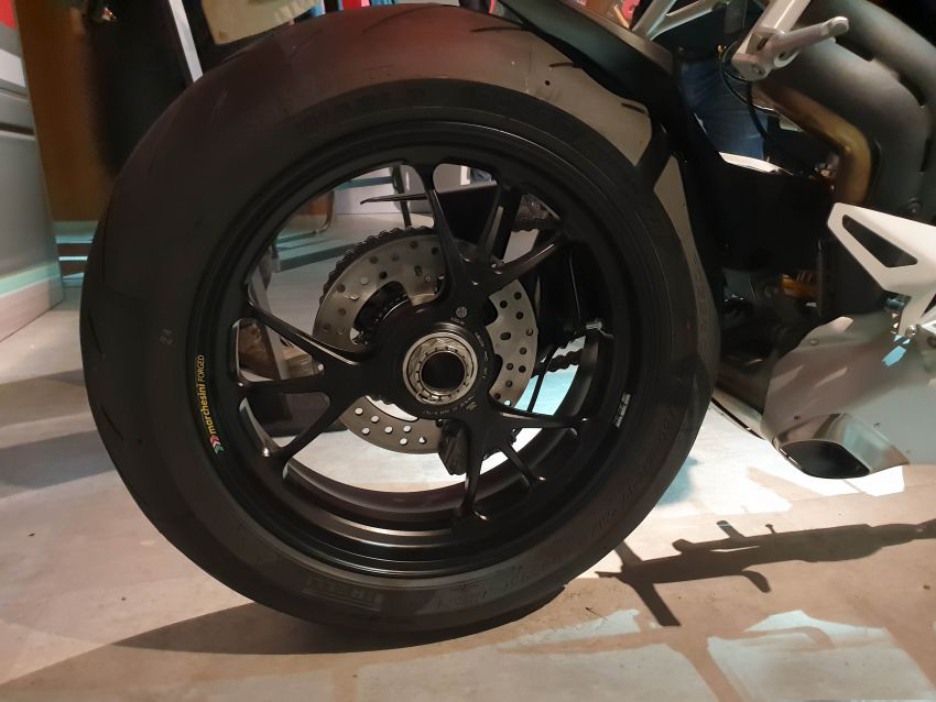 StreetFighter V4標(biāo)準(zhǔn)版本使用Marchesini輪轂,與前后倍耐力Diablo Rosso Corsa II輪胎相結(jié)合,尺寸為120/70 / ZR17-200/60 / ZR17的輪胎。在StreetFighter V4 S版本上,Marchesini對鋁合金輪轂比標(biāo)準(zhǔn)版本稍輕。