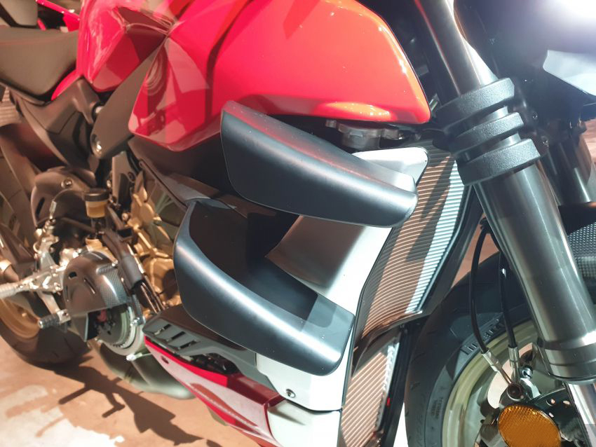 除了受到Joker啟發(fā)的侵略性輪廓外,StreetFighter V4還具有非常杰出的小翼,原廠作為標(biāo)準(zhǔn)配置,根據(jù)杜卡迪的說法,當(dāng)摩托車以270km / h的最大速度行駛時,這套機(jī)翼可產(chǎn)生高達(dá)28kg的向下牽引力。