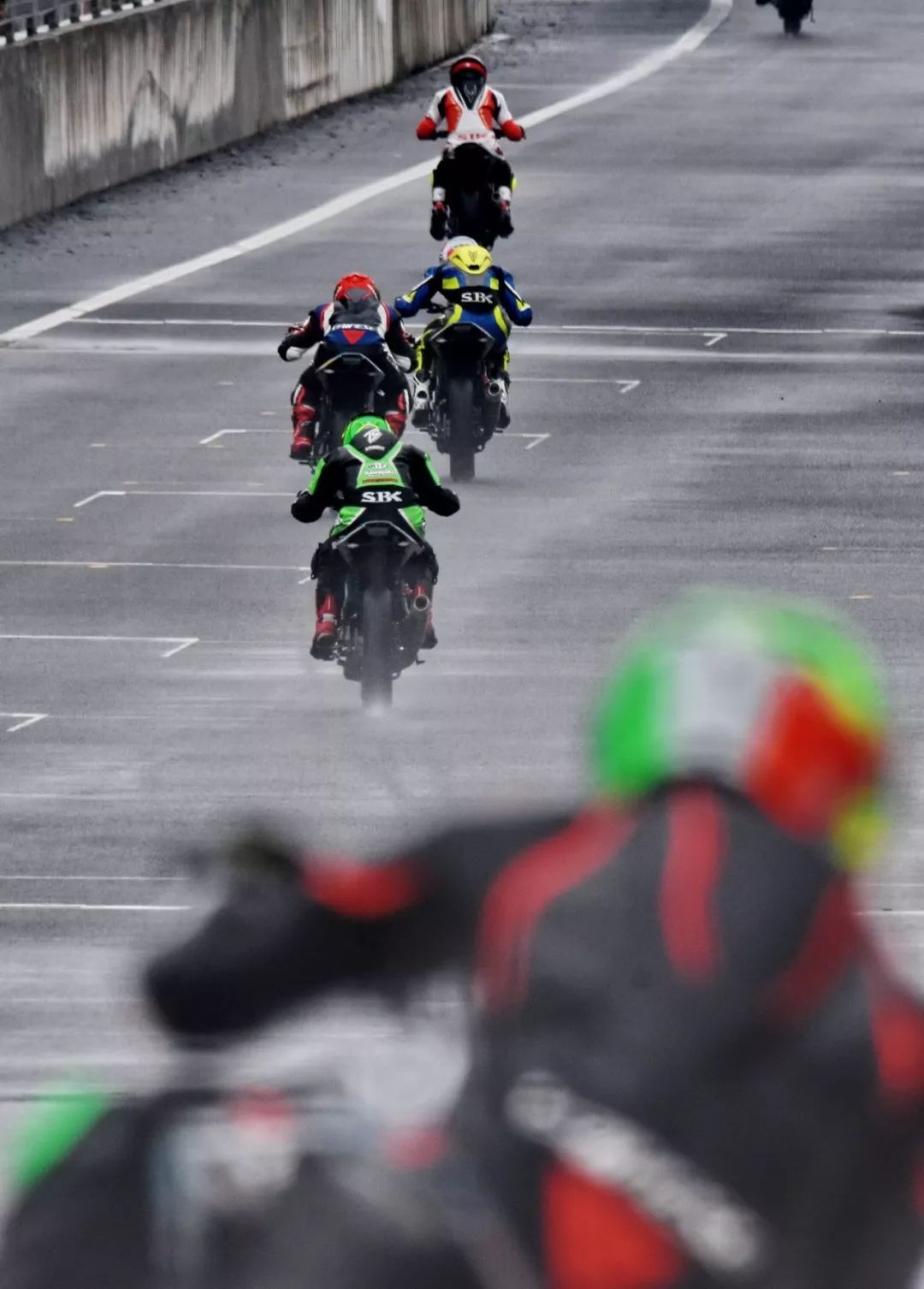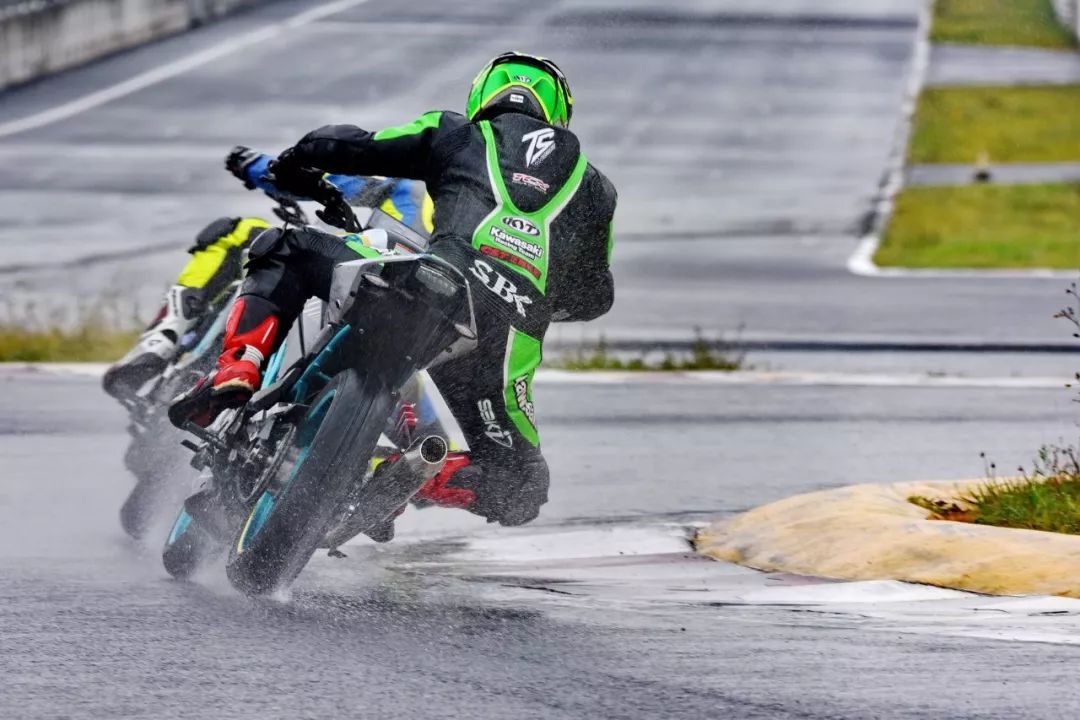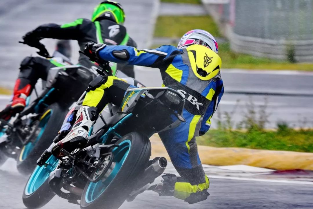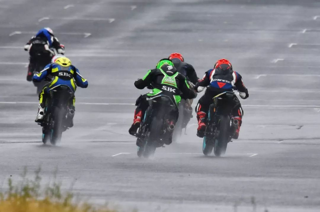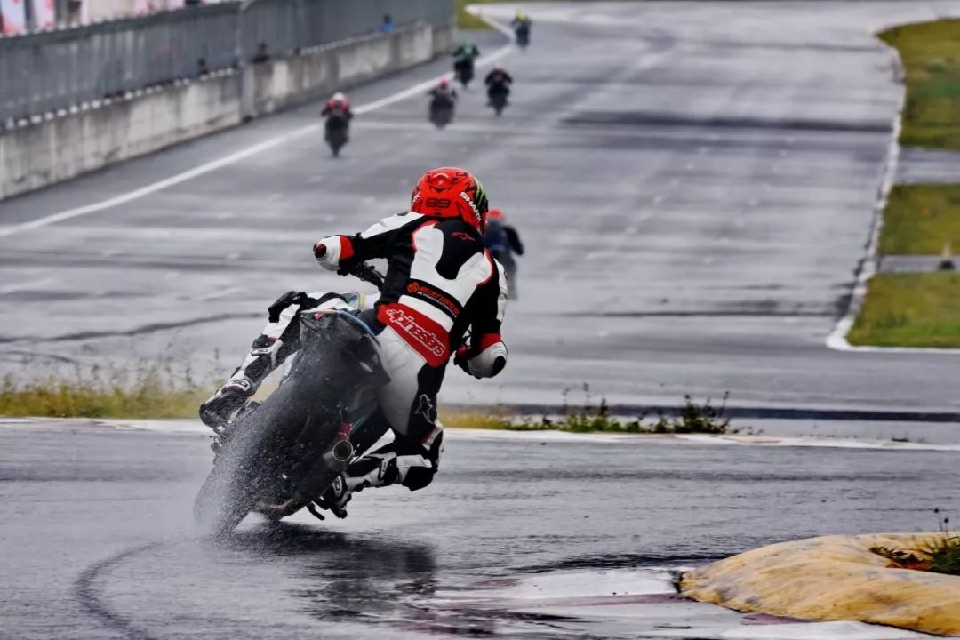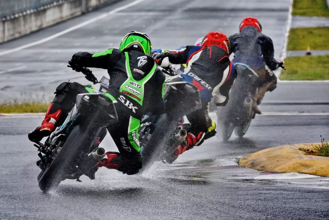 細雨綿綿、天空中水花飄舞。處于領先位置的王捷不斷往前推、似乎要一鼓作氣去拉出一段讓競爭者絕望的距離,在比賽最初的短短幾圈,他一度與后車拉出了大約 1 秒的距離。后面的程雷、李英杰、唐業(yè)昌,在濕滑的路面下奮力追趕,三人的近身追逐,成為了比賽初段的焦點。
