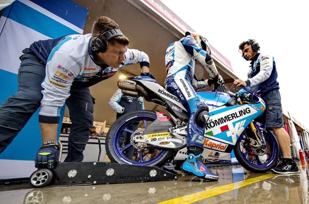 與其他的參賽隊伍一樣,吉斯尼(Gresini)Moto3 車隊也受到了惡劣天氣的影響,狂風(fēng)之下更是導(dǎo)致了各個級別中一些意外的發(fā)生。在周末時候、Moto3 級別的排位賽,車隊的主將、19 號車的羅德里戈(Gabri Rodrigo)由于在周五的自由練習(xí)中、已經(jīng)確認基本可以進入 Q2,為避免意外,吉斯尼車隊采取了一個安全第一的策略,特別是在早上進行的 FP3(第三節(jié)自由練習(xí)),羅德里戈并沒有出場,而另一位車手、54 號車的小羅斯(Riccardo Rossi)也只是跑了 9 圈。